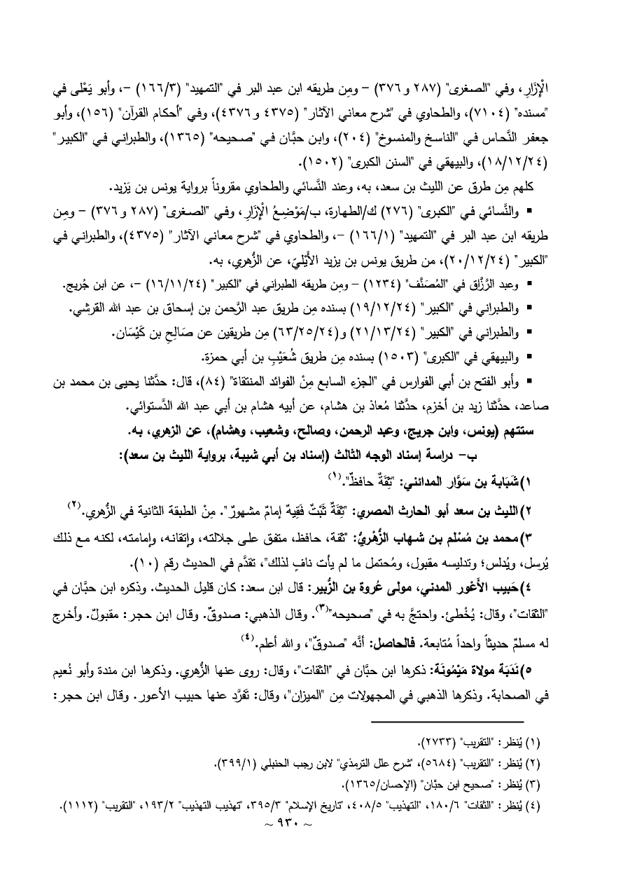 ٢) الليث بن سعد أبو الحارث المصري: "ثِقَةٌ ثَبْتٌ فَقِيهٌ إمامٌ مشهورٌ". مِنْ الطبقة الثانية في الزُّهري. (¬٢)