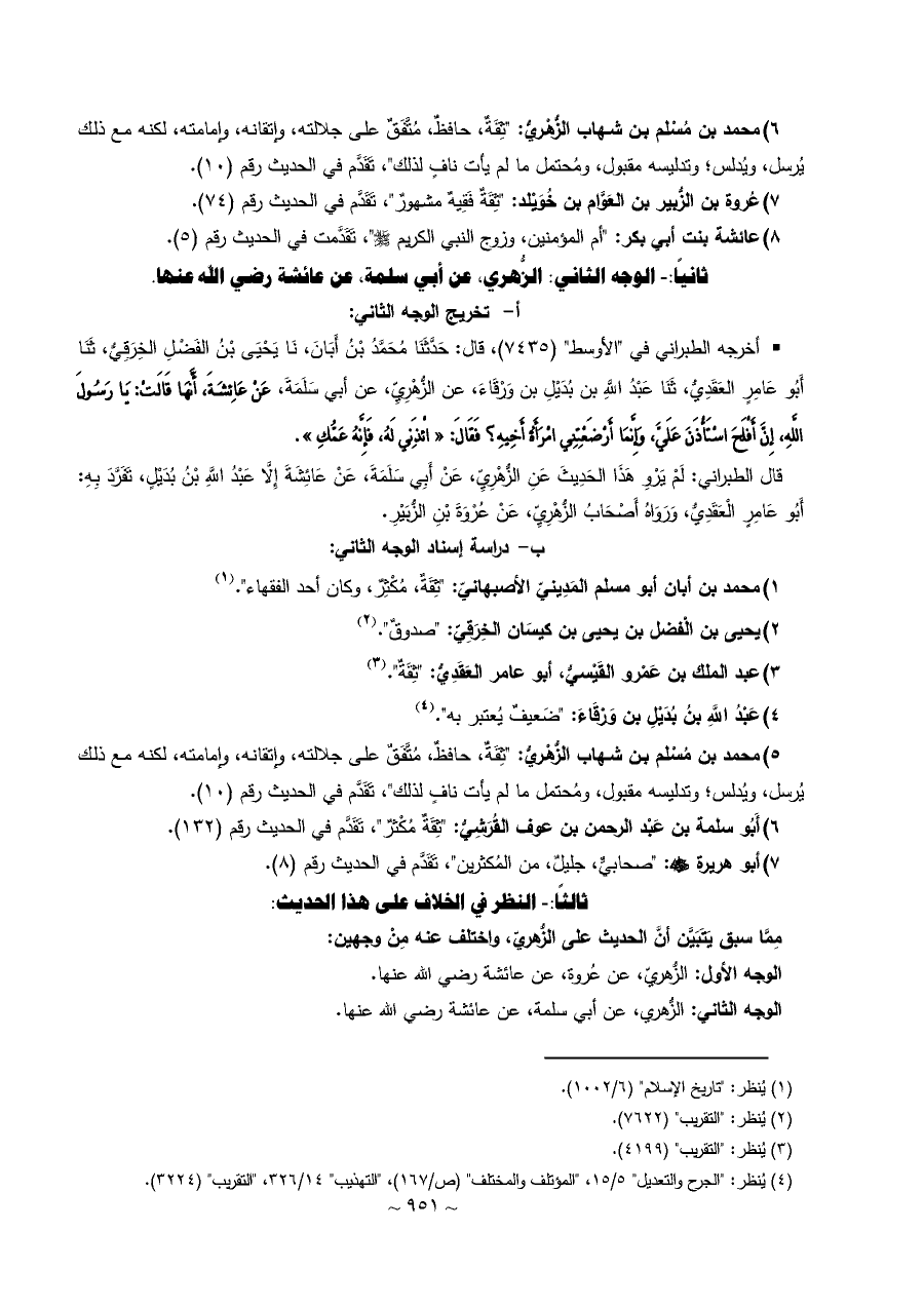 ثانيًا: - الوجه الثاني: الزُّهري، عن أبي سلمة، عن عائشة رضي الله عنها.
