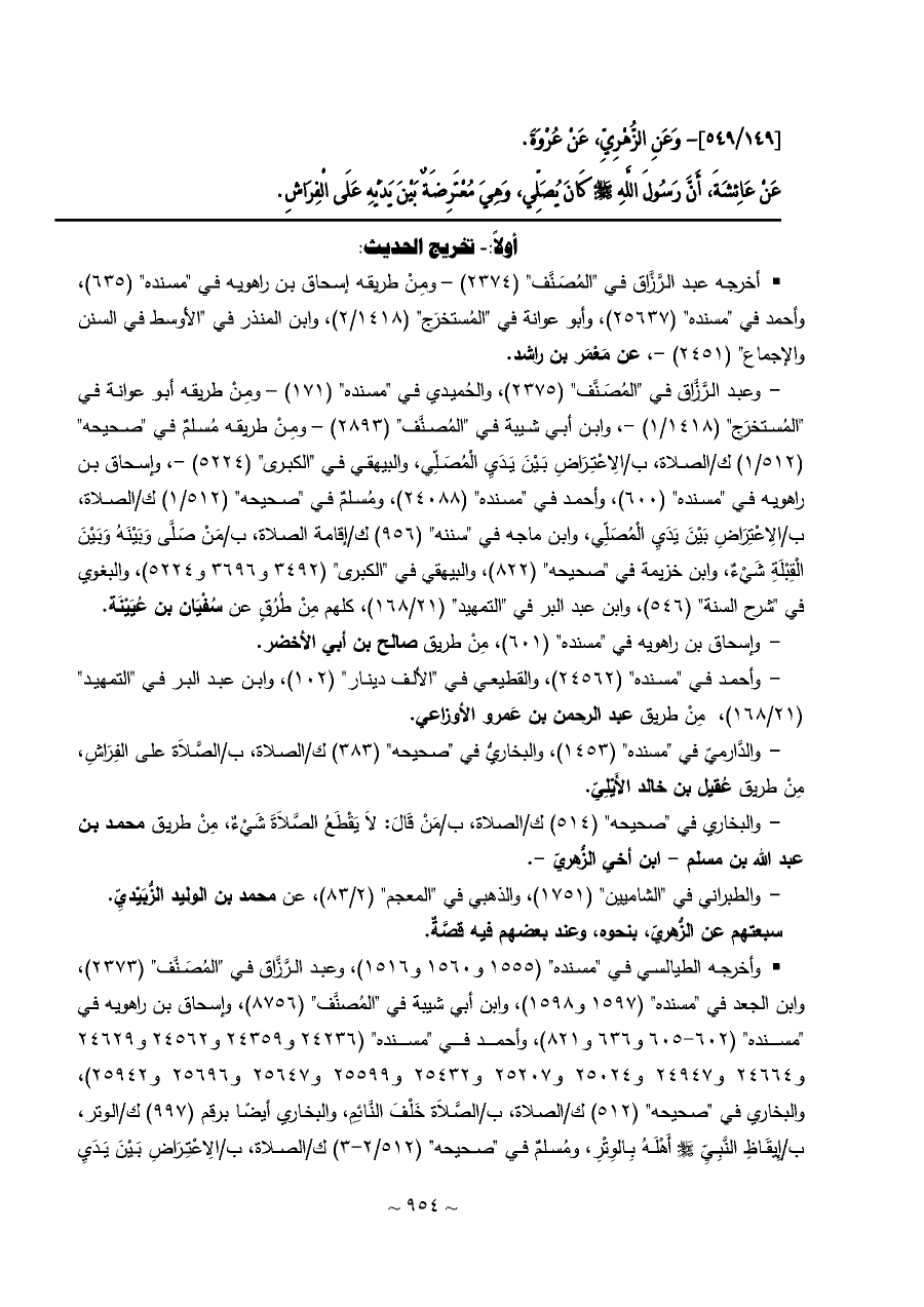 [١٤٩/ ٥٤٩]- وَعَنِ الزُّهْرِيِّ، عَنْ عُرْوَةَ.