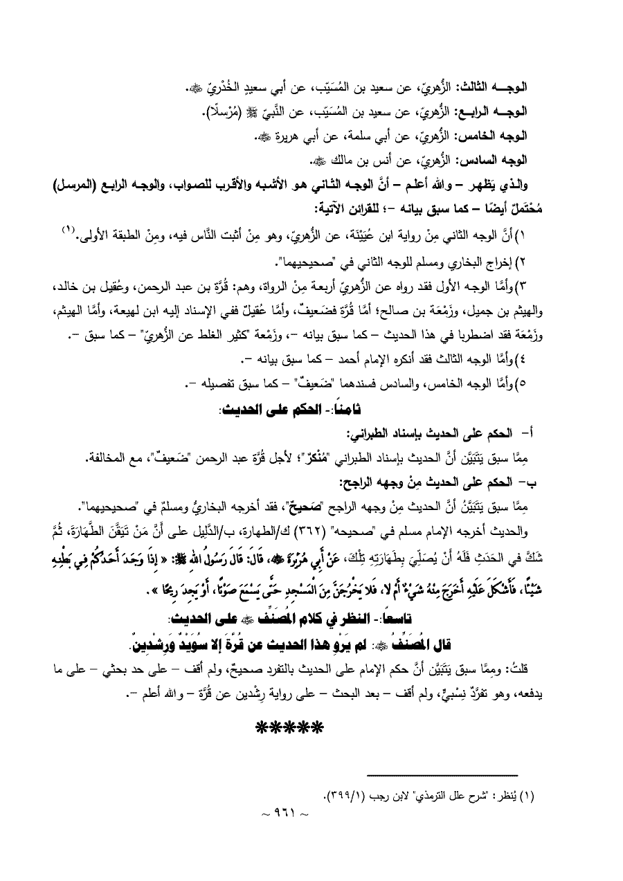 (¬١) يُنظر: "شرح علل الترمذي" لابن رجب (١/ ٣٩٩).