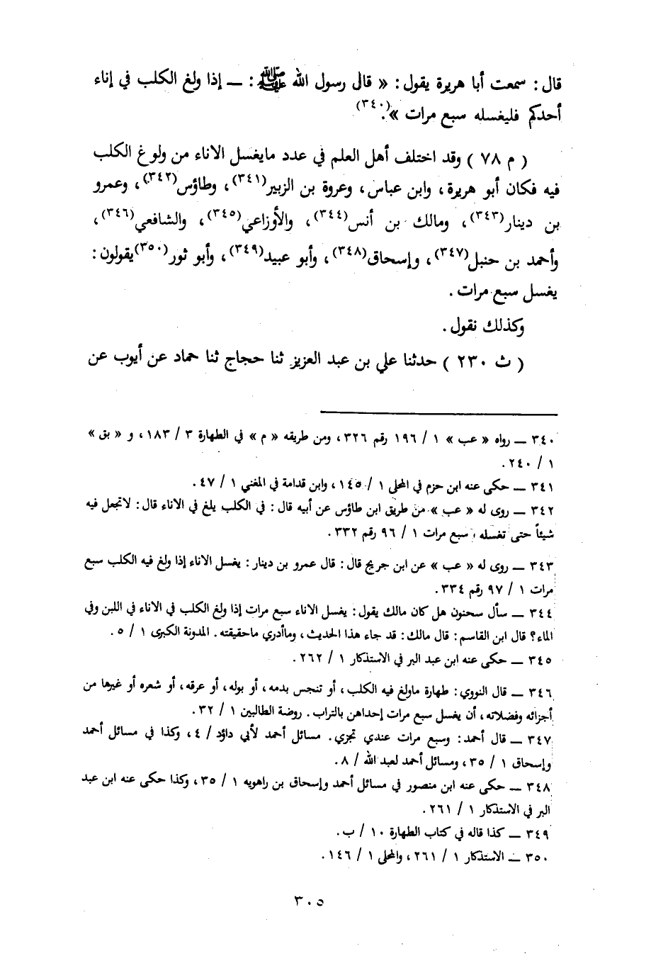 230 - حَدَّثَنَا عَلِيُّ بْنُ عَبْدِ الْعَزِيزِ، ثنا حَجَّاجٌ، ثنا حَمَّادٌ، عَنْ أَيُّوبَ، عَنِ -[306]- ابْنِ سِيرِينَ، عَنْ أَبِي هُرَيْرَةَ، قَالَ: «إِذَا وَلَغَ الْكَلْبُ فِي الْإِنَاءِ فَاغْسِلُوهُ سَبْعَ مَرَّاتٍ أُولَاهُنَّ بِالتُّرَابِ»