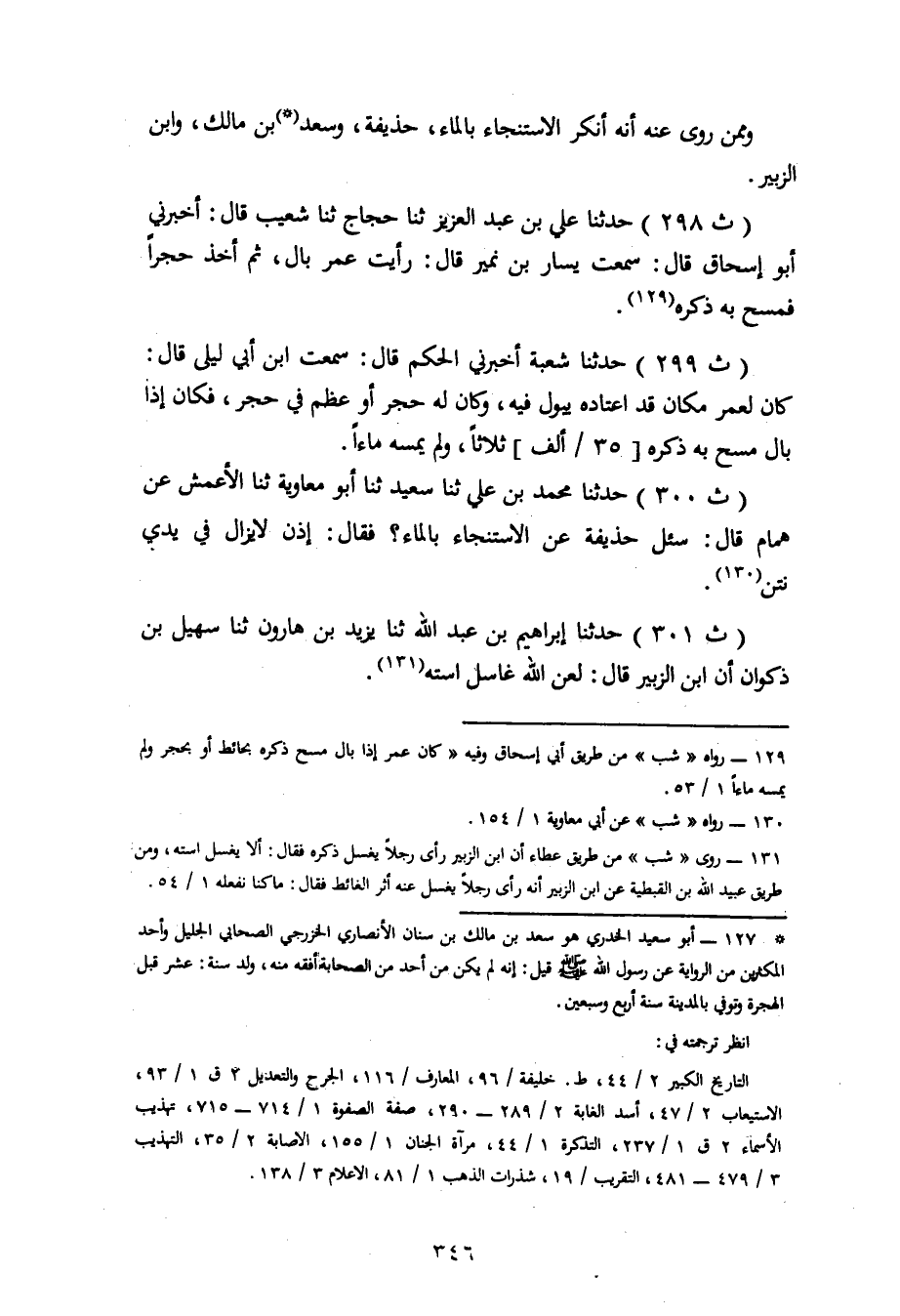 301 - حَدَّثَنَا إِبْرَاهِيمُ بْنُ عَبْدِ اللهِ، ثنا يَزِيدُ بْنُ هَارُونَ، ثنا سُهَيْلُ بْنُ ذَكْوَانَ، أَنَّ ابْنَ الزُّبَيْرِ، قَالَ: «لَعَنَ اللهُ غَاسِلَ اسْتَهِ»