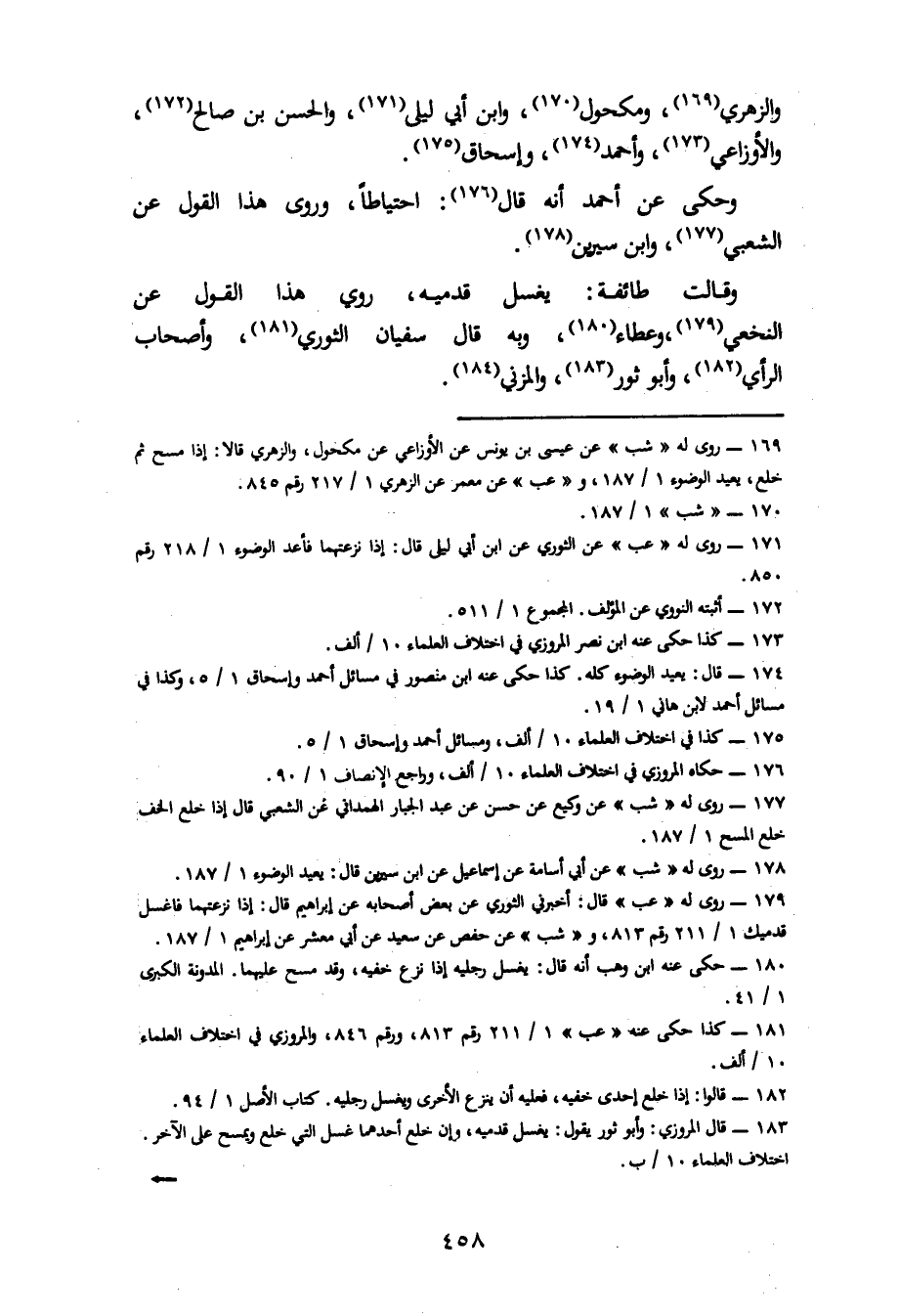 وَالزُّهْرِيُّ، وَمَكْحُولٌ، وَابْنُ أَبِي لَيْلَى، وَالْحَسَنُ بْنُ صَالِحٍ، وَالْأَوْزَاعِيُّ، وَأَحْمَدُ، وَإِسْحَاقُ، وَحُكِيَ عَنْ أَحْمَدَ أَنَّهُ قَالَ: احْتِيَاطًا. وَرُوِيَ هَذَا الْقَوْلُ عَنِ الشَّعْبِيِّ، وَابْنِ سِيرِينَ، وَقَالَتْ طَائِفَةٌ: يَغْسِلُ قَدَمَيْهِ، رُوِيَ هَذَا الْقَوْلُ عَنِ النَّخَعِيِّ، وَعَطَاءٍ، وَبِهِ قَالَ سُفْيَانُ الثَّوْرِيُّ، وَأَصْحَابُ الرَّأْيِ، وَأَبُو ثَوْرٍ، وَالْمَزَنِيُّ،