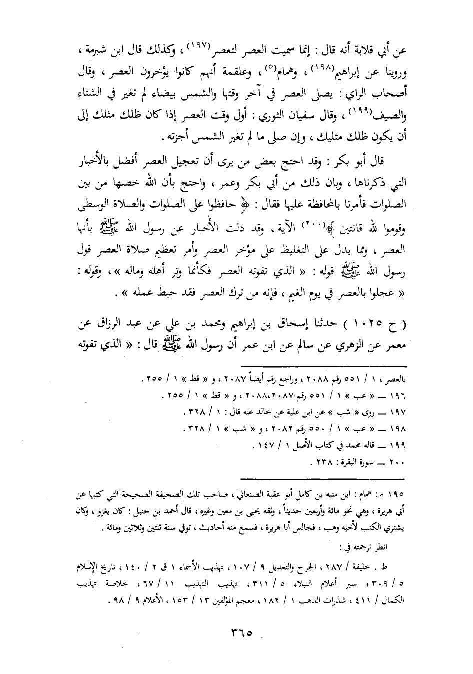 1025 - حَدَّثَنَا إِسْحَاقُ بْنُ إِبْرَاهِيمَ، وَمُحَمَّدُ بْنُ عَلِيٍّ، عَنْ عَبْدِ الرَّزَّاقِ، عَنْ مَعْمَرٍ، عَنِ الزُّهْرِيِّ، عَنْ سَالِمٍ، عَنِ ابْنِ عُمَرَ، أَنَّ رَسُولَ اللهِ صَلَّى اللَّهُ عَلَيْهِ وَسَلَّمَ قَالَ: «الَّذِي تَفُوتُهُ -[366]- الْعَصْرُ فَكَأَنَّمَا وُتِرَ أَهْلَهُ وَمَالَهُ»