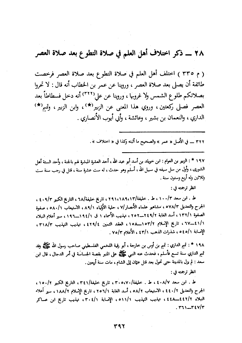 ذِكْرُ اخْتِلَافِ أَهْلِ الْعِلْمِ فِي صَلَاةِ التَّطَوُّعِ بَعْدَ صَلَاةِ الْعَصْرِ اخْتَلَفَ أَهْلُ الْعِلْمِ فِي صَلَاةِ التَّطَوُّعِ بَعْدَ صَلَاةِ الْعَصْرِ , فَرَخَّصَتْ طَائِفَةٌ أَنْ يُصَلَّى بَعْدَ صَلَاةِ الْعَصْرِ , وَرُوِّينَا عَنْ عُمَرَ بْنِ الْخَطَّابِ أَنَّهُ قَالَ: لَا تَحَرَّوْا بِصَلَاتِكُمْ طُلُوعَ الشَّمْسِ وَلَا غُرُوبَهَا , وَرُوِّينَا عَنْ عَلِيٍّ أَنَّهُ دَخَلَ فُسْطَاطًا بَعْدَ الْعَصْرِ , فَصَلَّى رَكْعَتَيْنِ , وَرُوِيَ هَذَا الْمَعْنَى عَنِ الزُّبَيْرِ وَابْنِ الزُّبَيْرِ , وَتَمِيمٍ الدَّارِيِّ , وَالنُّعْمَانِ بْنِ بَشِيرٍ , وَعَائِشَةَ , وَأَبِي أَيُّوبَ الْأَنْصَارِيِّ