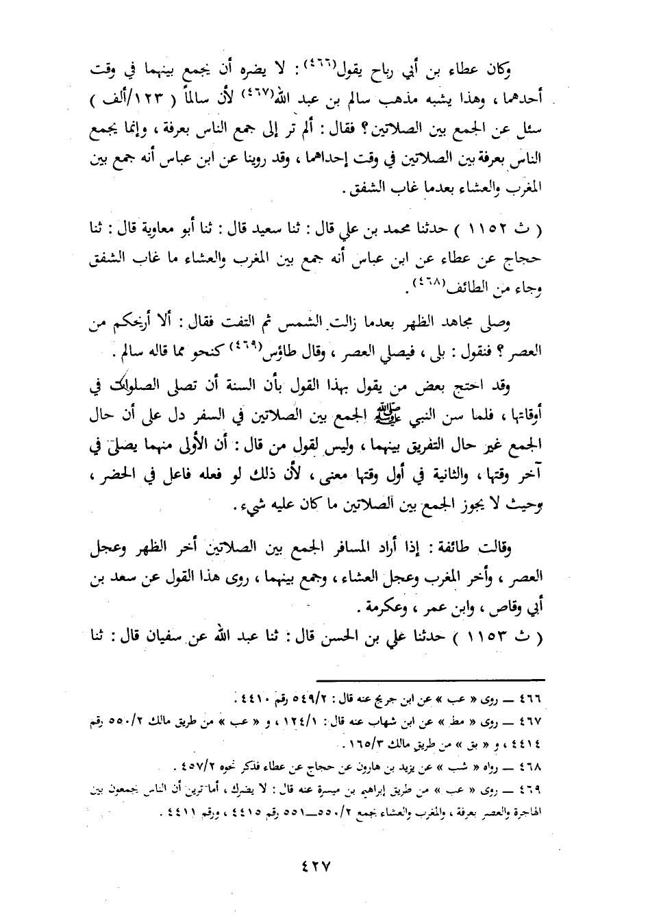 1153 - حَدَّثَنَا عَلِيُّ بْنُ الْحَسَنِ، قَالَ: ثنا عَبْدُ اللهِ، عَنْ سُفْيَانَ، قَالَ: ثنا -[428]- عَاصِمٌ الْأَحْوَلُ، عَنْ أَبِي عُثْمَانَ، قَالَ: خَرَجْتُ مَعَ سَعْدٍ إِلَى مَكَّةَ وَنَحْنُ مُوَافَدُونَ فَكَانَ يَجْمَعُ بَيْنَ الصَّلَاتَيْنِ يُؤَخِّرُ الظُّهْرَ وَيُعَجِّلُ الْعَصْرَ وَيُؤَخِّرُ الْمَغْرِبَ وَيُعَجِّلُ الْعِشَاءَ وَيَجْمَعُ بَيْنَهُمَا