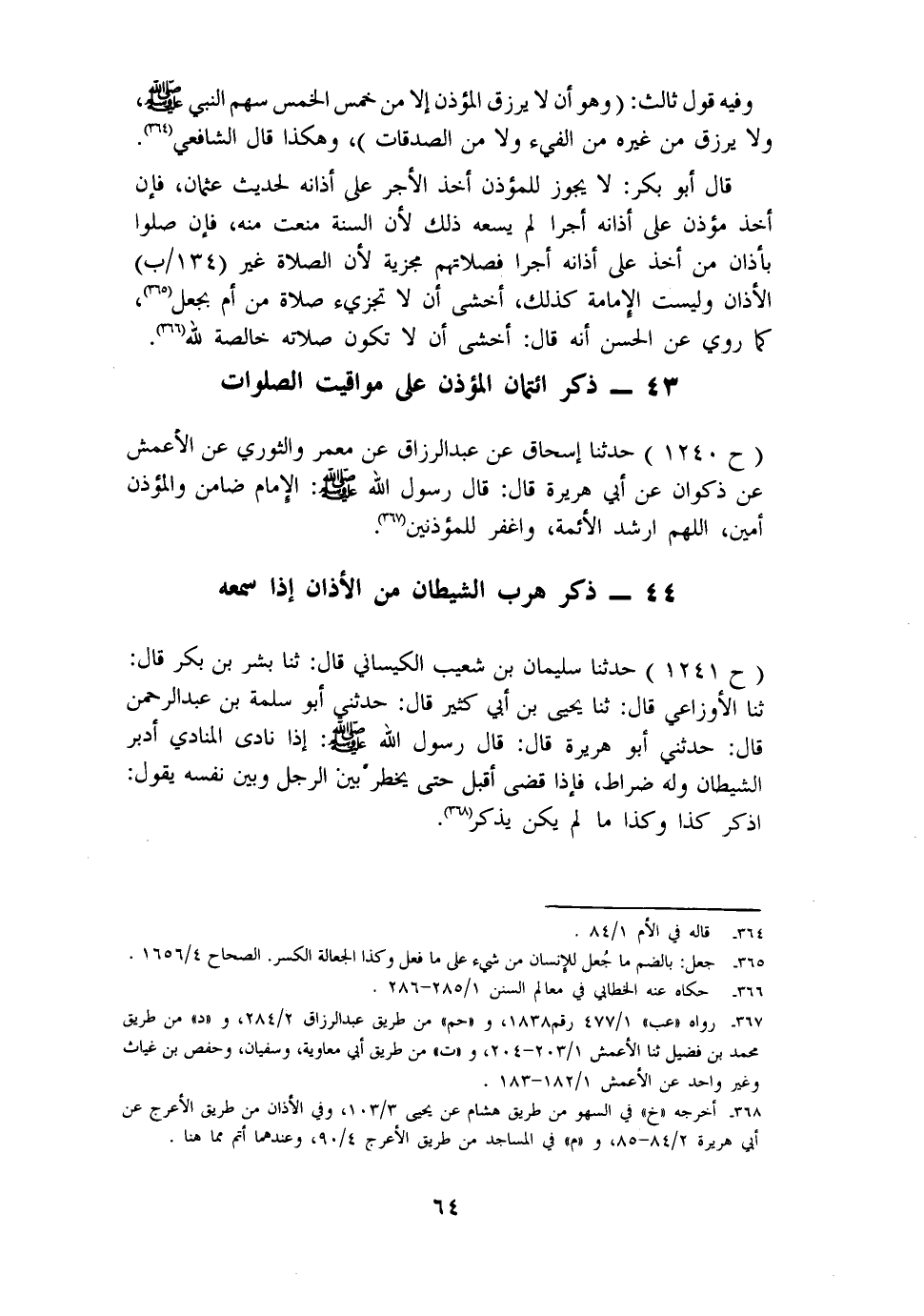 1241 - حَدَّثنا سُلَيْمَانُ بْنُ شُعَيْبٍ الْكَيْسَانِيُّ، قَالَ: ثنا بِشْرُ بْنُ بَكْرٍ، قَالَ: ثنا الْأَوْزَاعِيُّ، قَالَ: ثنا يَحْيَى بْنُ أَبِي كَثِيرٍ، قَالَ: حَدَّثَنِي أَبُو سَلَمَةَ بْنُ عَبْدِ الرَّحْمَنِ، قَالَ: حَدَّثَنِي أَبُو هُرَيْرَةَ، قَالَ: قَالَ رَسُولُ اللهِ صَلَّى اللَّهُ عَلَيْهِ وَسَلَّمَ: " إِذَا نَادَى الْمُنَادِي أَدْبَرَ الشَّيْطَانُ وَلَهُ ضُرَاطٌ، فَإِذَا قَضَى أَقْبَلَ حَتَّى يَخْطِرَ بَيْنَ الرَّجُلِ وَبَيْنَ نَفْسِهِ، يَقُولُ: اذْكُرْ كَذَا وَكَذَا مَا لَمْ يَكُنْ يَذْكُرُ "
