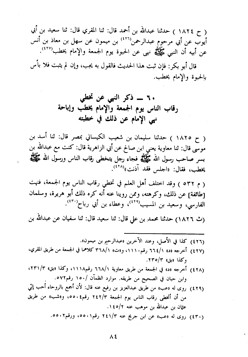 1826 - حَدَّثَنَا مُحَمَّدُ بْنُ عَلِيٍّ، قَالَ: ثنا سَعِيدٌ، قَالَ: ثنا سُفْيَانُ، عَنْ عَبْدِ اللهِ بْنِ -[85]- أَبِي سَعِيدٍ، عَنْ أَبِيهِ، عَنْ أَبِي هُرَيْرَةَ قَالَ: «مَا يَسُرُّنِي أَنِّي تَرَكْتُ الْجُمُعَةَ، وَلِي حُمْرُ النَّعَمِ، وَلَأَنْ أُصَلِّيَ بِالْحَرَّةِ أَحَبُّ إِلَيَّ مِنْ أَنْ أُمْهِلَ، حَتَّى إِذَا خَرَجَ الْإِمَامُ، وَجَلَسَ النَّاسُ مَجَالِسَهُمْ، حَيْثُ أَتَخَطَّى رِقَابَهُمْ»