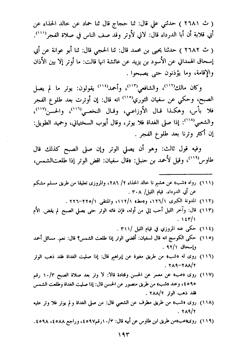 2681 - حَدَّثَنِي عَلِيُّ قَالَ: ثنا حَجَّاجٌ قَالَ: ثنا حَمَّادٌ، عَنْ خَالِدٍ الْحَذَّاءِ، عَنْ أَبِي قِلَابَةَ أَنَّ أَبَا الدَّرْدَاءِ قَالَ: «لَإِنِّي لَأُوتِرُ وَقَدْ صَفَّ النَّاسُ فِي صَلَاةِ الْفَجْرِ»