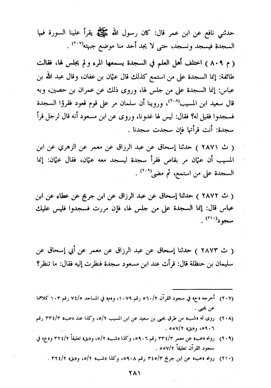 2873 - حَدَّثَنَا إِسْحَاقُ، عَنْ عَبْدِ الرَّزَّاقِ، عَنْ مَعْمَرٍ، عَنْ أَبِي إِسْحَاقَ، عَنْ سُلَيْمانَ بْنِ حَنْظَلَةَ، قَالَ: قَرَأْتُ عِنْدَ ابْنِ مَسْعُودٍ سَجْدَةً , فَنَظَرْتُ إِلَيْهِ فَقَالَ: «مَا تَنْظُرُ؟ -[282]- أَنْتَ قَرَأْتَهَا , فَإِنْ سَجَدْتَ سَجَدْنَا»