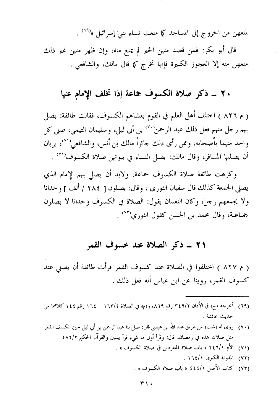 ذِكْرُ الصَّلَاةِ عِنْدَ خُسُوفِ الْقَمَرِ اخْتَلَفُوا فِي الصَّلَاةِ عِنْدَ كُسُوفِ الْقَمَرِ، فَرَأَتْ طَائِفَةٌ أَنْ يُصَلَّى عِنْدَ كُسُوفِ الْقَمَرِ رُوِّينَا عَنِ ابْنِ عَبَّاسٍ أَنَّهُ فَعَلَ ذَلِكَ.