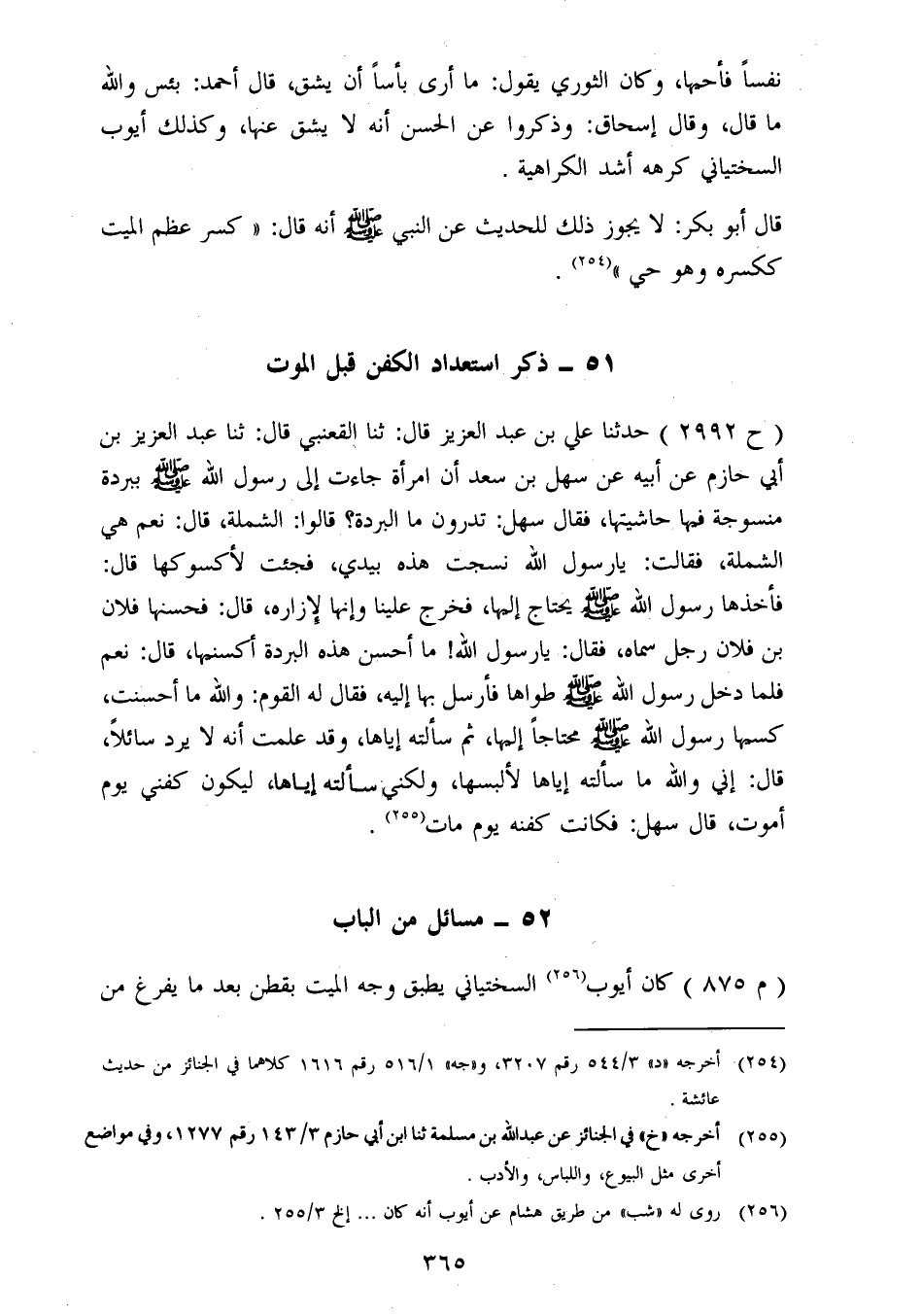مَسَائِلُ مِنَ الْبَابِ كَانَ أَيُّوبُ السِّخْتِيَانِيُّ يُطَبِّقُ وَجْهَ الْمَيِّتِ بِقُطْنٍ بَعْدَمَا يَفْرُغُ مِنْ