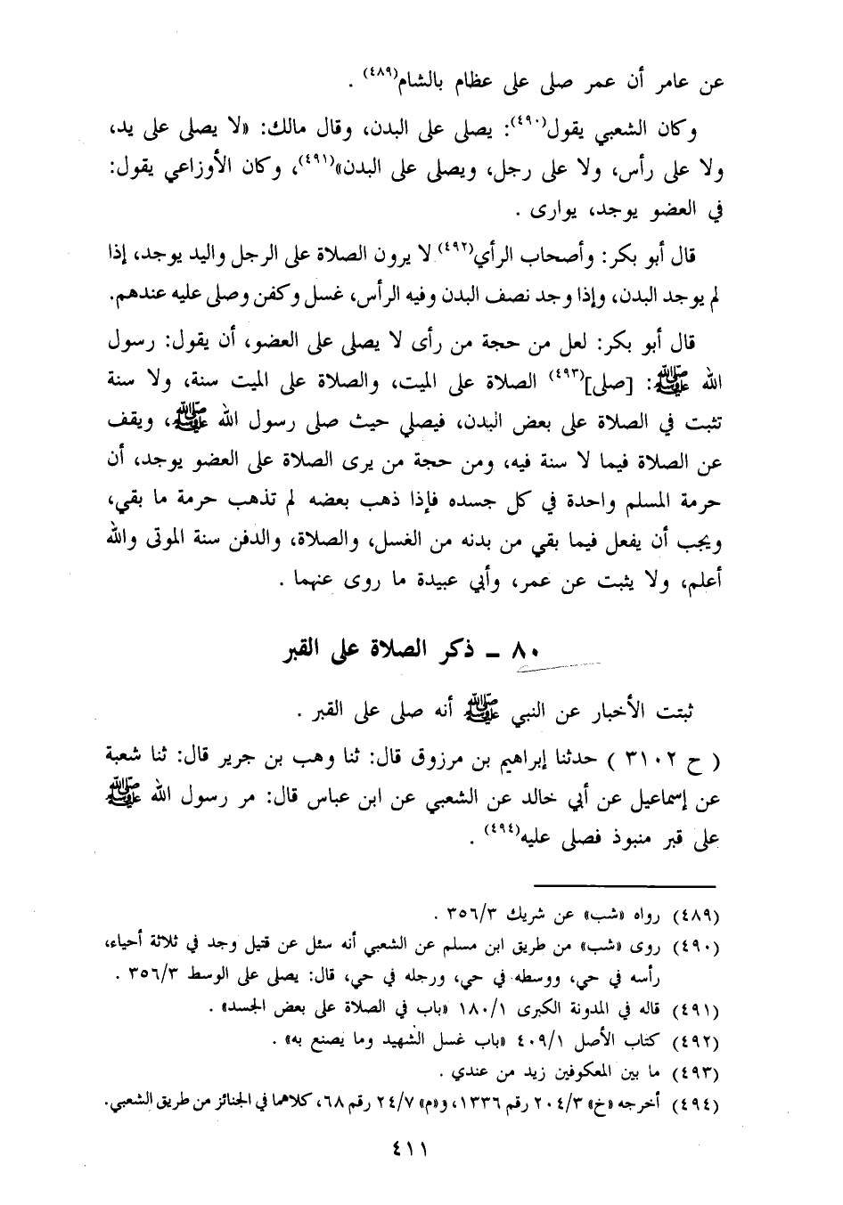 3102 - حَدَّثَنَا إِبْرَاهِيمُ بْنُ مَرْزُوقٍ، قَالَ: ثنا وَهْبُ بْنُ جَرِيرٍ، قَالَ: ثنا شُعْبَةُ، عَنْ إِسْمَاعِيلَ بْنِ أَبِي خَالِدٍ، عَنِ الشَّعْبِيِّ، عَنِ ابْنِ عَبَّاسٍ، قَالَ: «مَرَّ رَسُولُ اللهِ صَلَّى اللَّهُ عَلَيْهِ وَسَلَّمَ عَلَى قَبْرٍ مَنْبُوذٍ فَصَلَّى عَلَيْهِ»