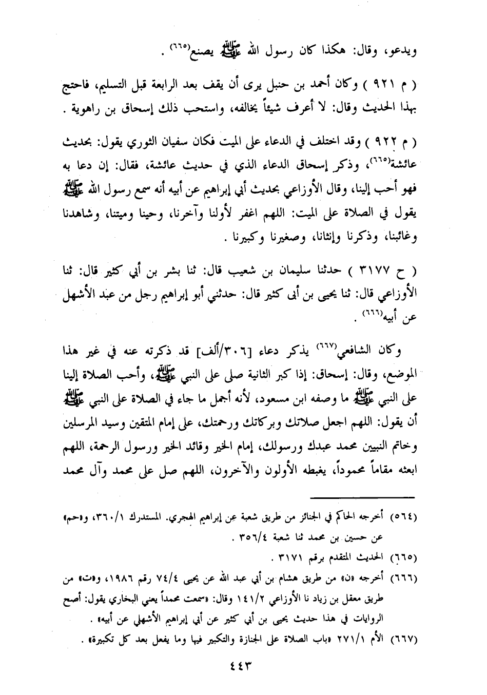 3177 - وَقَالَ الْأَوْزَاعِيُّ بِحَدِيثِ أَبِي إِبْرَاهِيمَ عَنْ أَبِيهِ، أَنَّهُ سَمِعَ رَسُولَ اللهِ صَلَّى اللَّهُ عَلَيْهِ وَسَلَّمَ يَقُولُ فِي الصَّلَاةِ عَلَى الْمَيِّتِ: «اللهُمَّ اغْفِرْ لِأَوَّلِنَا وَآخِرِنَا، وَحَيِّنَا وَمَيِّتِنَا، وَشَاهِدِنَا وَغَائِبِنَا، وَذَكَرِنَا وَأُنْثَانَا، وَصَغِيرِنَا وَكَبِيرِنَا» حَدَّثَنَا سُلَيْمَانُ بْنُ شُعَيْبٍ، قَالَ: ثنا بِشْرُ بْنُ أَبِي كَثِيرٍ، قَالَ: ثنا الْأَوْزَاعِيُّ، قَالَ: ثنا يَحْيَى بْنُ أَبِي كَثِيرٍ، قَالَ: حَدَّثَنِي إِبْرَاهِيمُ، رَجُلٌ مِنْ عَبْدِ الْأَشْهَلِ، عَنْ أَبِيهِ وَكَانَ الشَّافِعِيُّ، يَذْكُرُ دُعَاءً قَدْ ذَكَرْتُهُ عَنْهُ فِي غَيْرِ هَذَا الْمَوْضِعِ، وَقَالَ إِسْحَاقُ: " إِذَا كَبَّرَ الثَّانِيَةَ صَلَّى عَلَى النَّبِيِّ صَلَّى اللَّهُ عَلَيْهِ وَسَلَّمَ، وَأَحَبُّ الصَّلَاةِ إِلَيْنَا عَلَى النَّبِيِّ صَلَّى اللَّهُ عَلَيْهِ وَسَلَّمَ مَا وَصَفَهُ ابْنُ مَسْعُودٍ؛ لِأَنَّهُ أَجْمَلَ مَا جَاءَ فِي الصَّلَاةِ عَلَى النَّبِيِّ صَلَّى اللَّهُ عَلَيْهِ وَسَلَّمَ، أَنْ يَقُولَ: «اللهُمَّ اجْعَلْ صَلَاتَكَ وَبَرَكَاتِكَ وَرَحْمَتَكَ عَلَى إِمَامِ الْمُتَّقِينَ وَسَيِّدِ الْمُرْسَلِينَ، وَخَاتَمِ النَّبِيِّينَ مُحَمَّدٍ عَبْدِكَ وَرَسُولِكَ، إِمَامِ الْخَيْرِ وَقَائِدِ الْخَيْرِ وَرَسُولِ الرَّحْمَةِ، اللهُمَّ ابْعَثْهُ مَقَامًا مَحْمُودًا، يَغْبِطُهُ الْأَوَّلُونَ وَالْآخِرُونَ، اللهُمَّ صَلِّ عَلَى مُحَمَّدٍ وَآلِ مُحَمَّدٍ -[444]- كَمَا صَلَّيْتَ عَلَى إِبْرَاهِيمَ وَآلِ إِبْرَاهِيمَ، إِنَّكَ حَمِيدٌ مَجِيدٌ، اللهُمَّ بَارِكْ عَلَى مُحَمَّدٍ، وَعَلَى آلِ مُحَمَّدٍ، كَمَا بَارَكْتَ عَلَى إِبْرَاهِيمَ وَعَلَى آلِ إِبْرَاهِيمَ إِنَّكَ حَمِيدٌ مَجِيدٌ» . وَكَانَ سَعِيدُ بْنُ الْمُسَيِّبِ، وَالنَّخَعِيُّ، يَقُولَانِ: «لَيْسَ فِيهِ دُعَاءٌ» ، قَالَ إِبْرَاهِيمُ: مَعْلُومٌ، وَقَالَ سَعِيدٌ: مُؤَقَّتٌ، وَقَالَ ابْنُ الْقَاسِمِ: «مَا عَلِمْتُ إِنَّهُ يَعْنِي مَا لَهَا ذِكْرًا إِلَّا الدُّعَاءَ عَلَى الْمَيِّتِ قَطُّ»