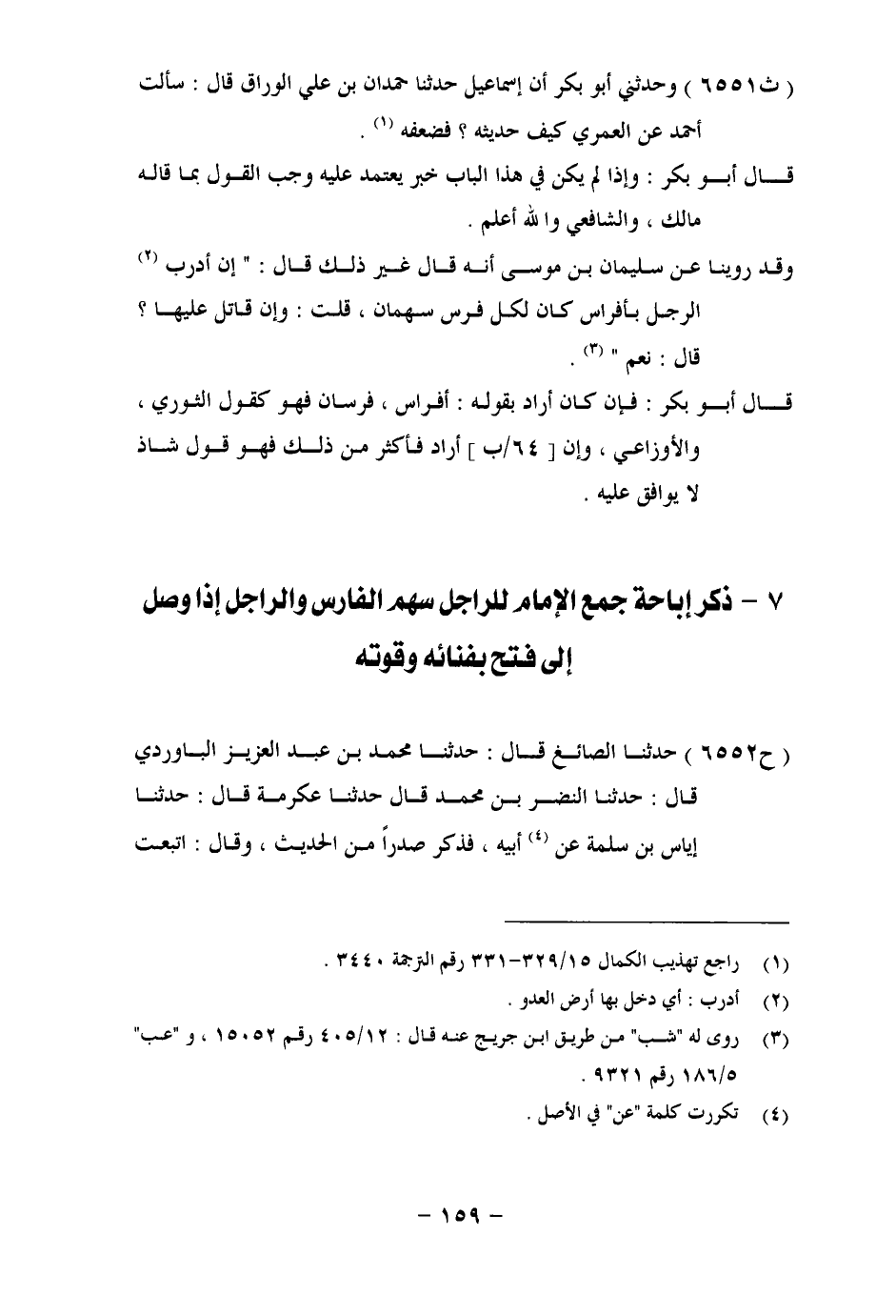 ذِكْرُ إِبَاحَةِ جَمْعِ الْإِمَامِ لِلرَّاجِلِ سَهْمَ الْفَارِسِ وَالرَّاجِلِ إِذَا وَصَلَ إِلَى فَتْحٍ بِفَنَائِهِ وَقُوَّتِهِ