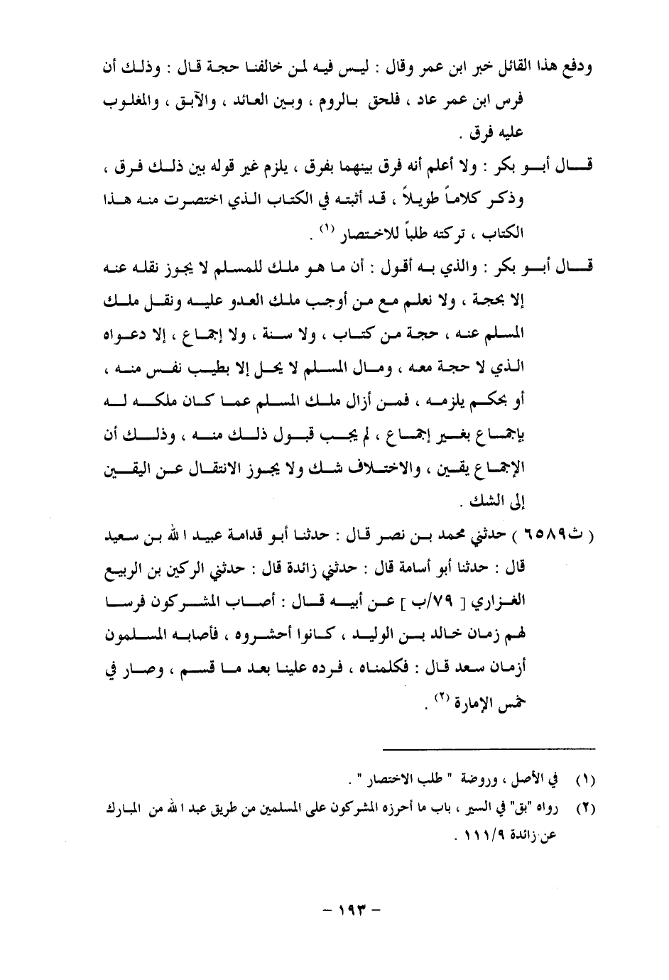 6589 - حَدَّثَنِي مُحَمَّدُ بْنُ نَصْرٍ، قَالَ: حَدَّثَنَا أَبُو قُدَامَةَ عُبَيْدُ اللهِ بْنُ سَعِيدٍ، قَالَ: حَدَّثَنَا أَبُو أُسَامَةَ، قَالَ: حَدَّثَنِي زَائِدَةُ، قَالَ: حَدَّثَنِي الرُّكَيْنُ بْنُ الرَّبِيعِ الْغَزَارِيُّ، عَنْ أَبِيهِ، قَالَ: أَصَابَ الْمُشْرِكُونَ فَرَسًا لَهُمْ زَمَانَ خَالِدِ بْنِ الْوَلِيدِ، كَانُوا أَحْشَرُوهُ، فَأَصَابَهُ الْمُسْلِمُونَ أَزْمَانَ سَعْدٍ، قَالَ: فَكَلَّمْنَاهُ، فَرَدَّهُ عَلَيْنَا بَعْدَمَا قُسِمَ، وَصَارَ فِي خُمْسِ الْإِمَارَةِ