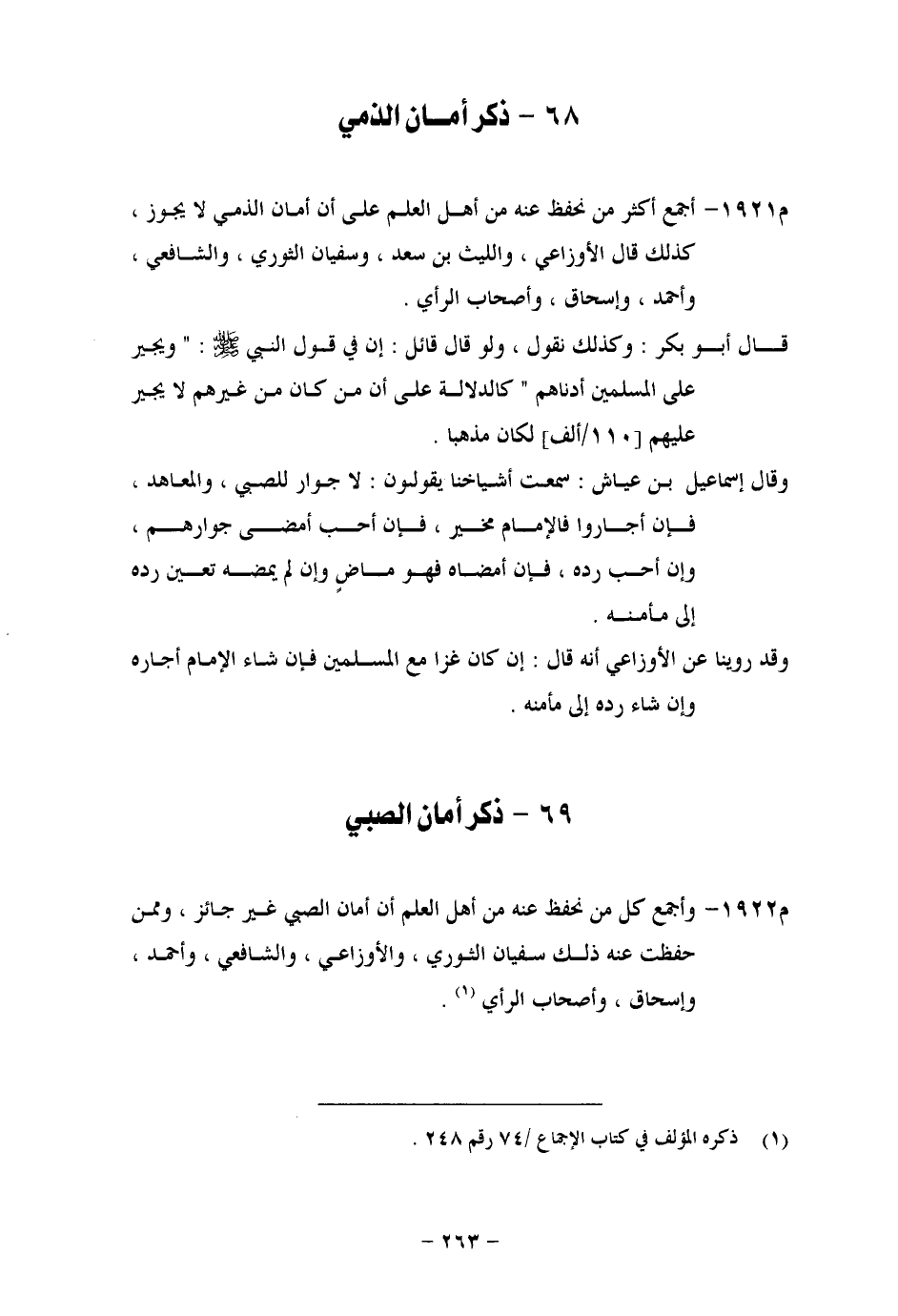 ذِكْرُ أَمَانِ الصَّبِيِّ وَأَجْمَعَ كُلُّ مَنْ نَحْفَظُ عَنْهُ مِنْ أَهْلِ الْعِلْمِ أَنَّ أَمَانَ الصَّبِيِّ غَيْرُ جَائِزٍ، وَمِمَّنْ حَفِظْتُ عَنْهُ ذَلِكَ سُفْيَانُ الثَّوْرِيُّ، وَالْأَوْزَاعِيُّ، وَالشَّافِعِيُّ، وَأَحْمَدُ، وَإِسْحَاقُ، وَأَصْحَابُ الرَّأْيِ