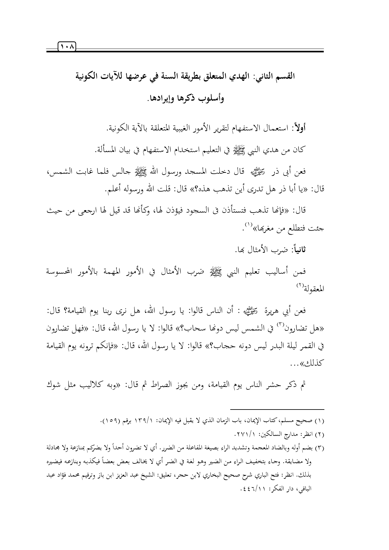 القسم الثاني: الهدي المتعلق بطريقة السنة في عرضها للآيات الكونية وأسلوب ذكرها وإيرادها.