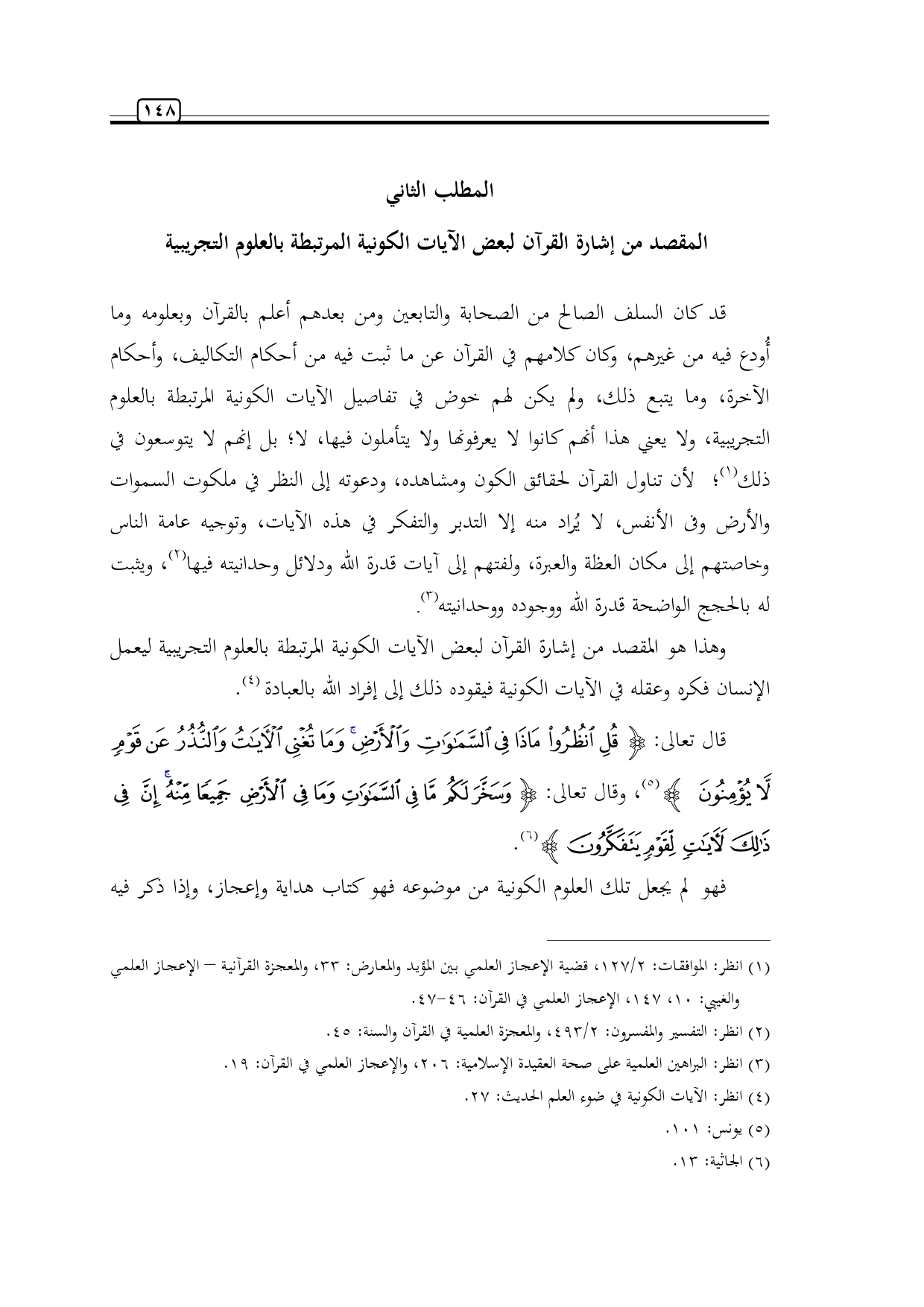 (¬1) انظر: الموافقات: 2/ 127، قضية الإعجاز العلمي بين المؤيد والمعارض: 33، والمعجزة القرآنية - الإعجاز العلمي والغيبي: 10، 147، الإعجاز العلمي في القرآن: 46 - 47.