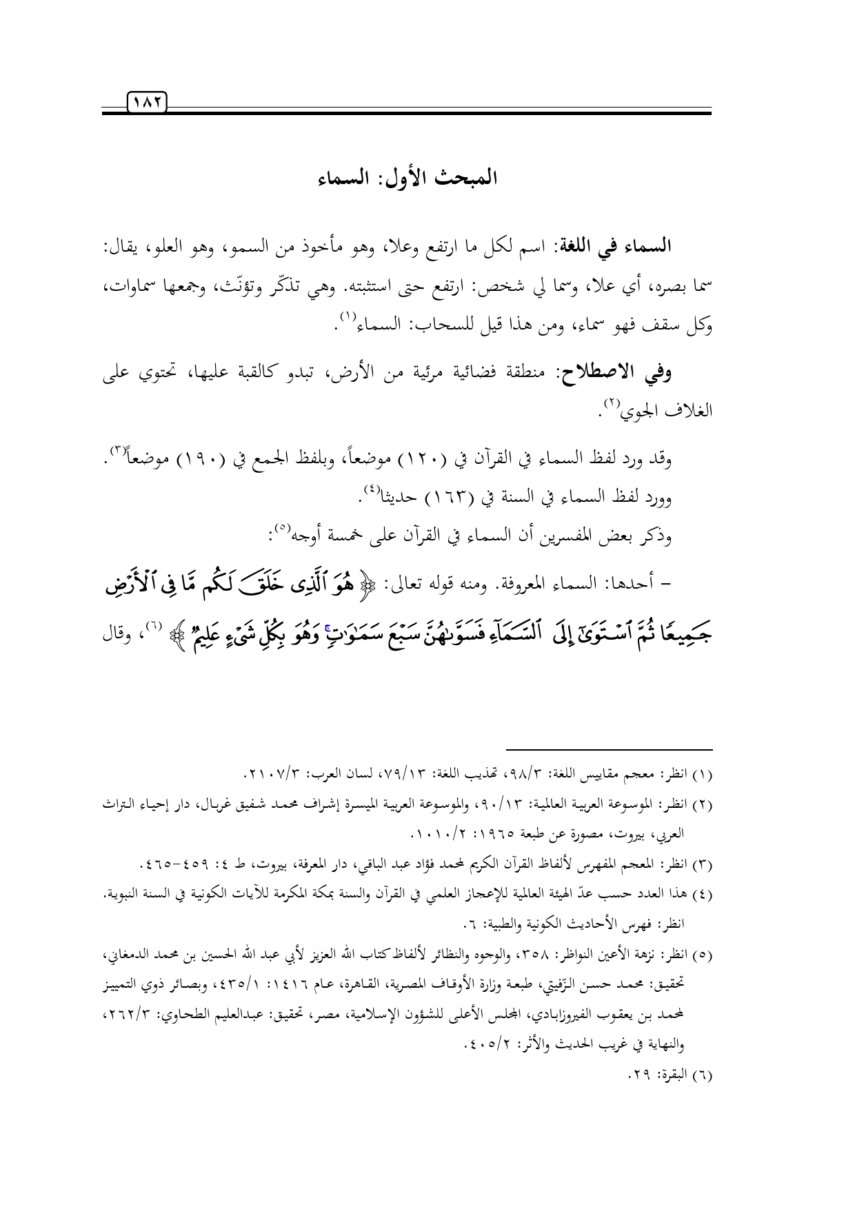 وقد ورد لفظ السماء في القرآن في (120) موضعاً، وبلفظ الجمع في (190) موضعاً (¬3).