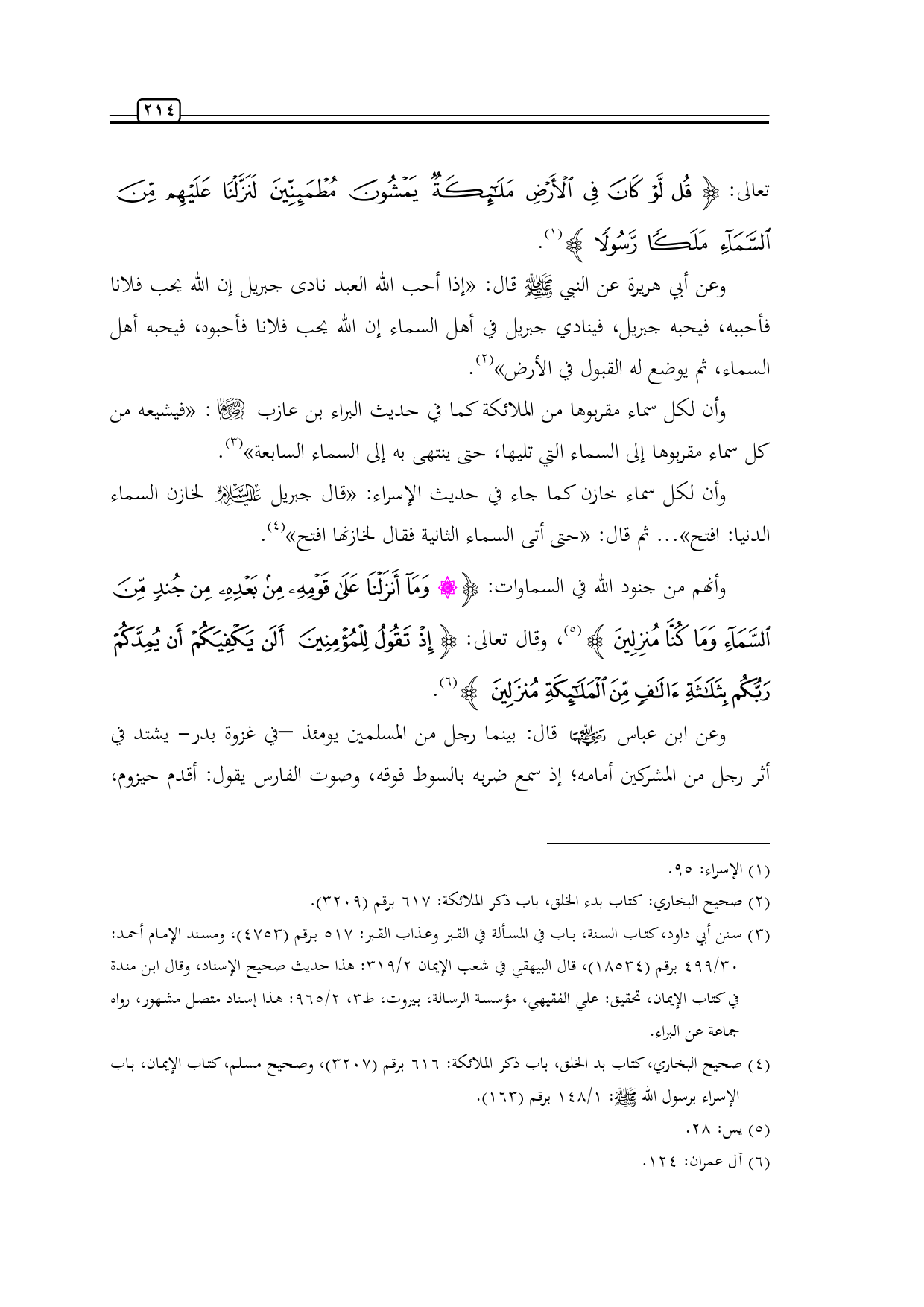 (¬2) صحيح البخاري: كتاب بدء الخلق، باب ذكر الملائكة: 617 برقم (3209).