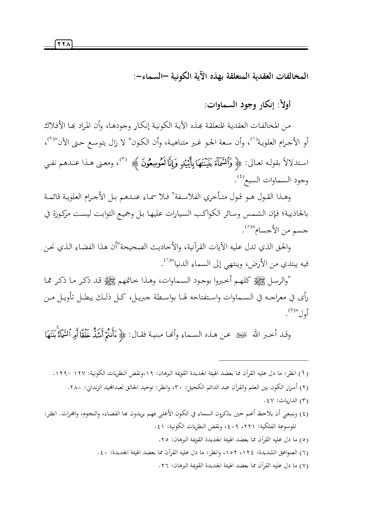 (¬4) وينبغي أن يلاحظ أنهم حين يذكرون السماء في الكون الأعلى فهم يريدون بها الفضاء، والنجوم، والمجرات. انظر: الموسوعة الفلكية: 221، 409، ونقض النظريات الكونية: 41.