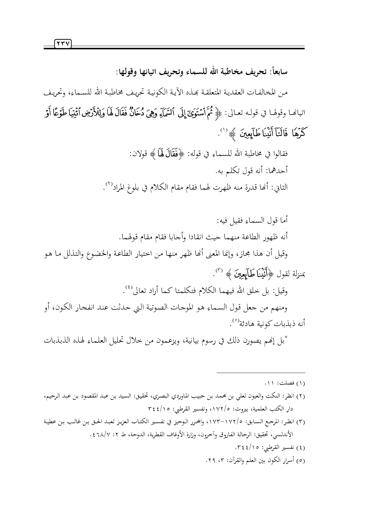 سابعاً: تحريف مخاطبة الله للسماء وتحريف اتيانها وقولها: