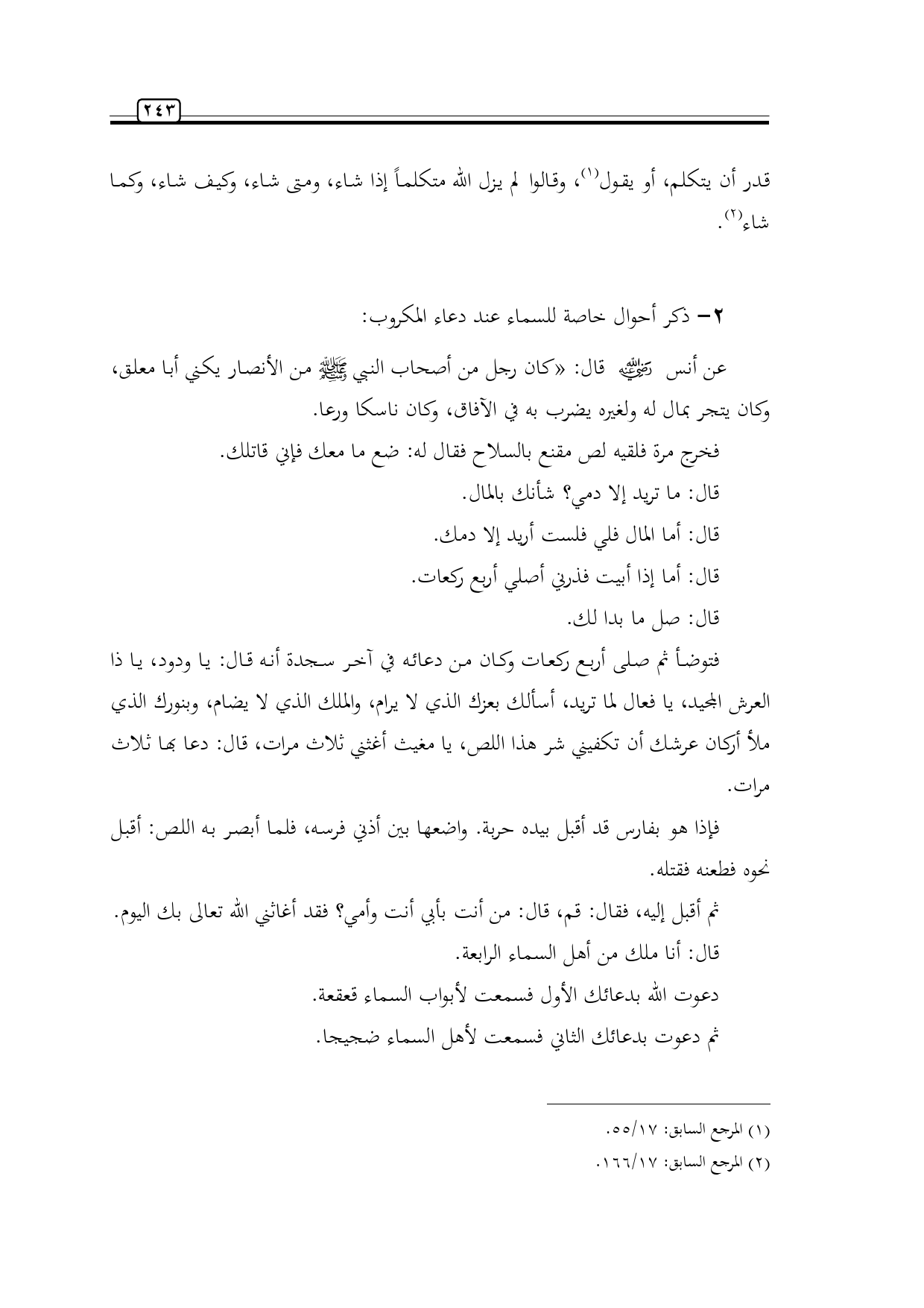 2 - ذكر أحوال خاصة للسماء عند دعاء المكروب: