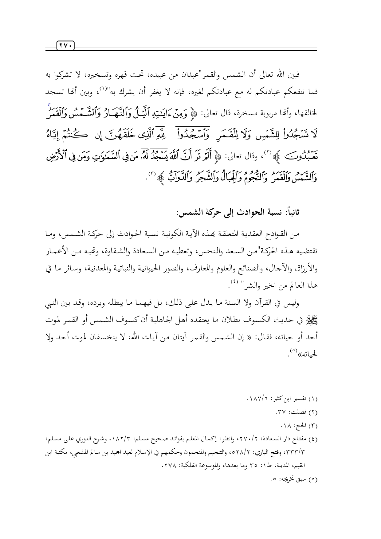 ثانياً: نسبة الحوادث إلى حركة الشمس:
