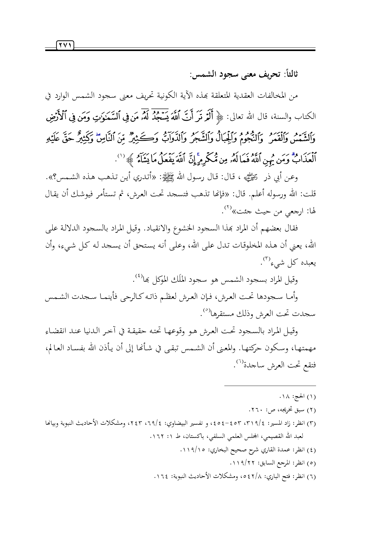(¬3) انظر: زاد المسير: 4/ 319، 453 - 454، وتفسير البيضاوي: 4/ 69، 243، ومشكلات الأحاديث النبوية وبيانها لعبد الله القصيمي، المجلس العلمي السلفي، باكستان، ط 1: 162.