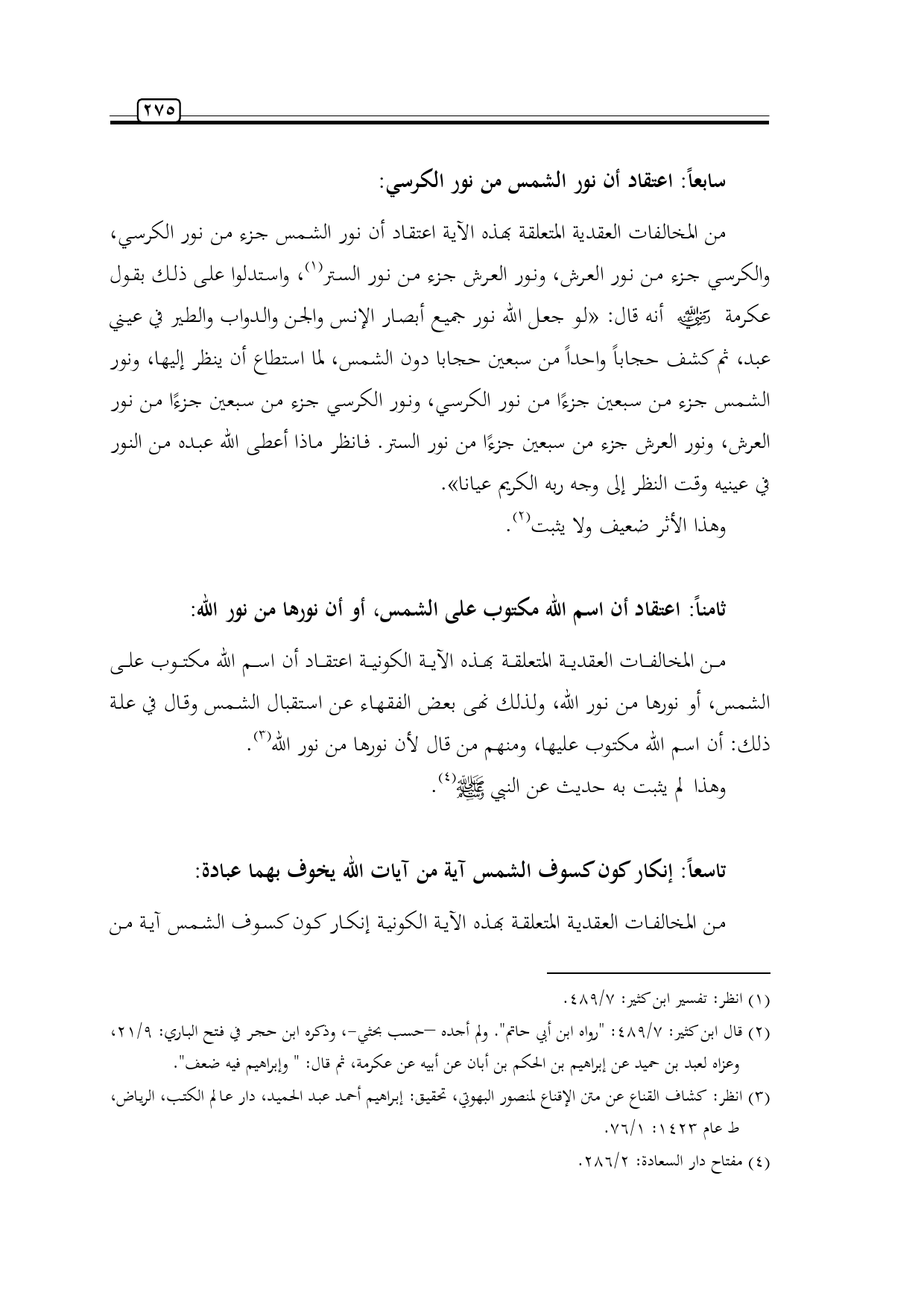 سابعاً: اعتقاد أن نور الشمس من نور الكرسي: