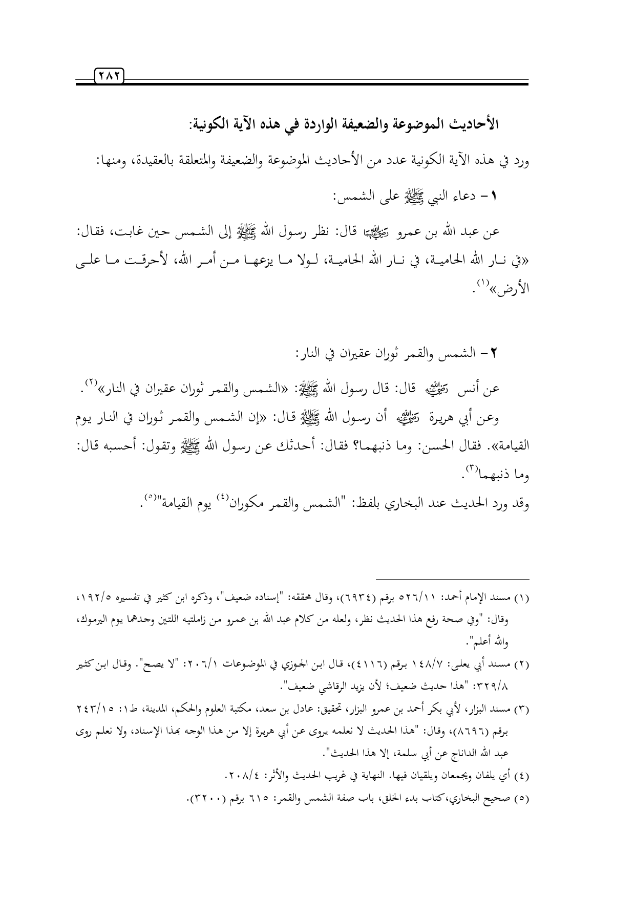 الأحاديث الموضوعة والضعيفة الواردة في هذه الآية الكونية: