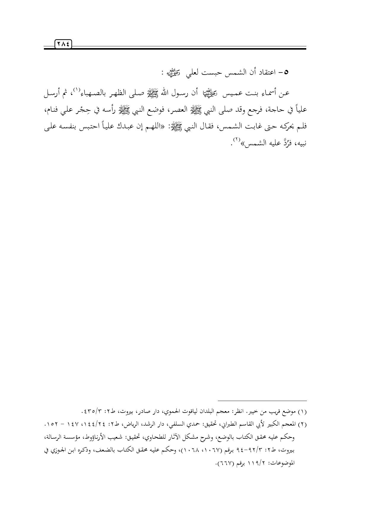 5 - اعتقاد أن الشمس حبست لعلي -رضي الله عنه-: