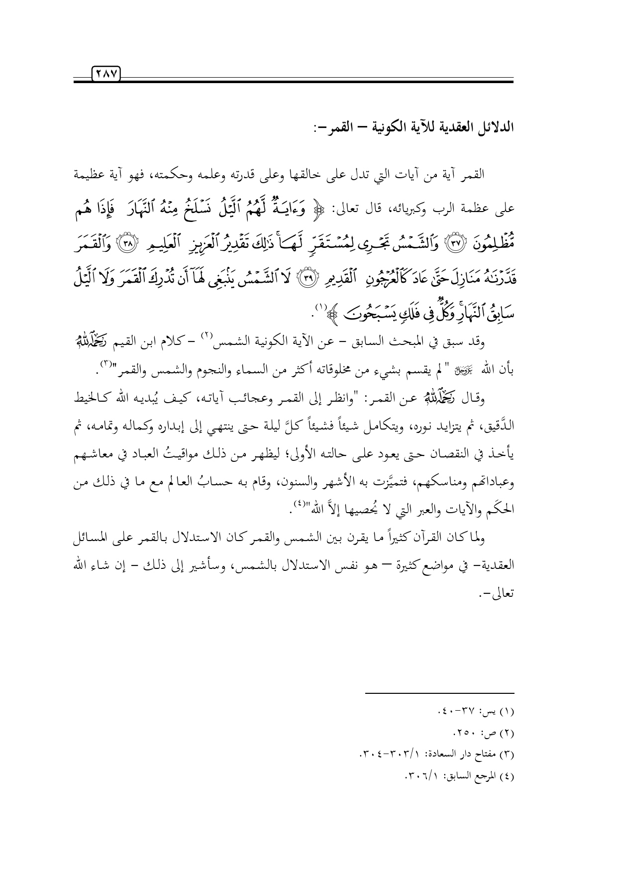 ولما كان القرآن كثيراً ما يقرن بين الشمس والقمر كان الاستدلال بالقمر على المسائل العقدية- في مواضع كثيرة - هو نفس الاستدلال بالشمس، وسأشير إلى ذلك - إن شاء الله تعالى-.