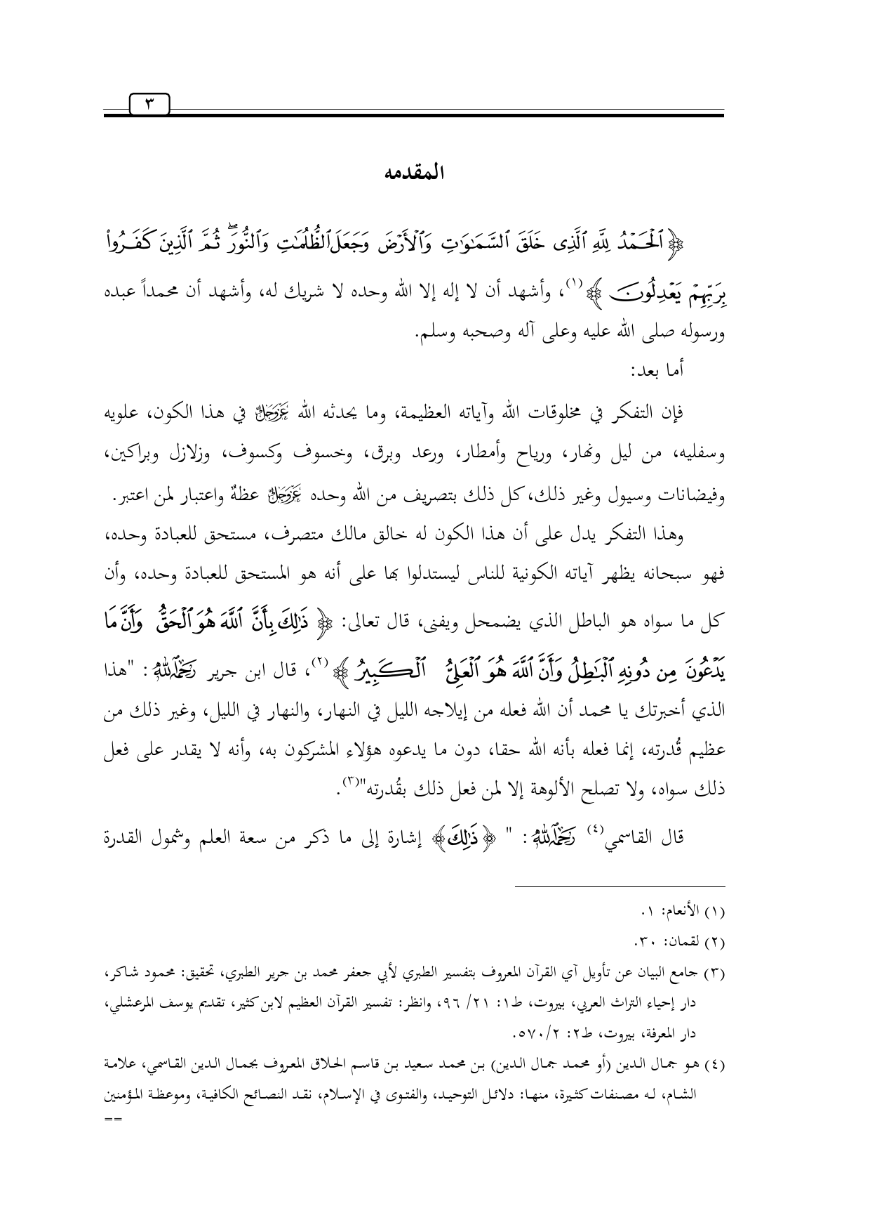 (¬3) جامع البيان عن تأويل آي القرآن المعروف بتفسير الطبري لأبي جعفر محمد بن جرير الطبري، تحقيق: محمود شاكر، دار إحياء التراث العربي، بيروت، ط1: 21/ 96، وانظر: تفسير القرآن العظيم لابن كثير، تقديم يوسف المرعشلي، دار المعرفة، بيروت، ط2: 2/ 570.