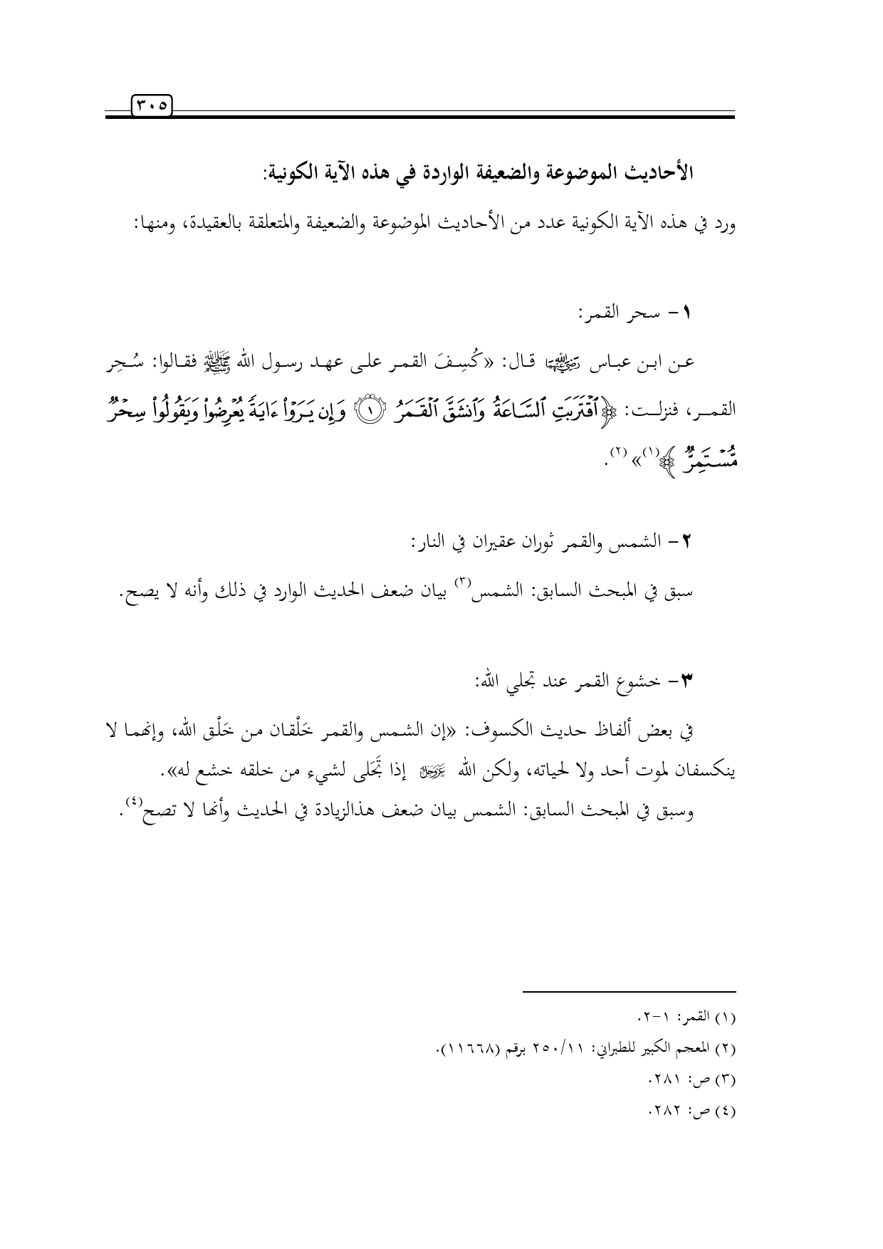 الأحاديث الموضوعة والضعيفة الواردة في هذه الآية الكونية: