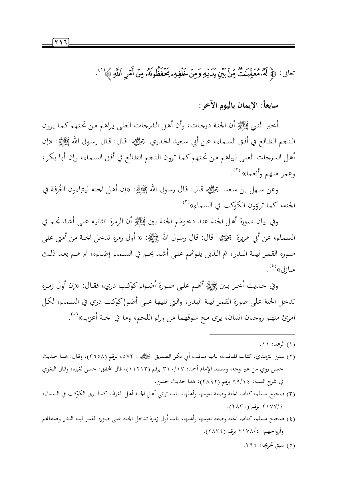 (¬3) صحيح مسلم، كتاب الجنة وصفة نعيمها وأهلها، باب ترائي أهل الجنة أهل الغرف كما يرى الكوكب في السماء: 4/ 2177 برقم (2830).