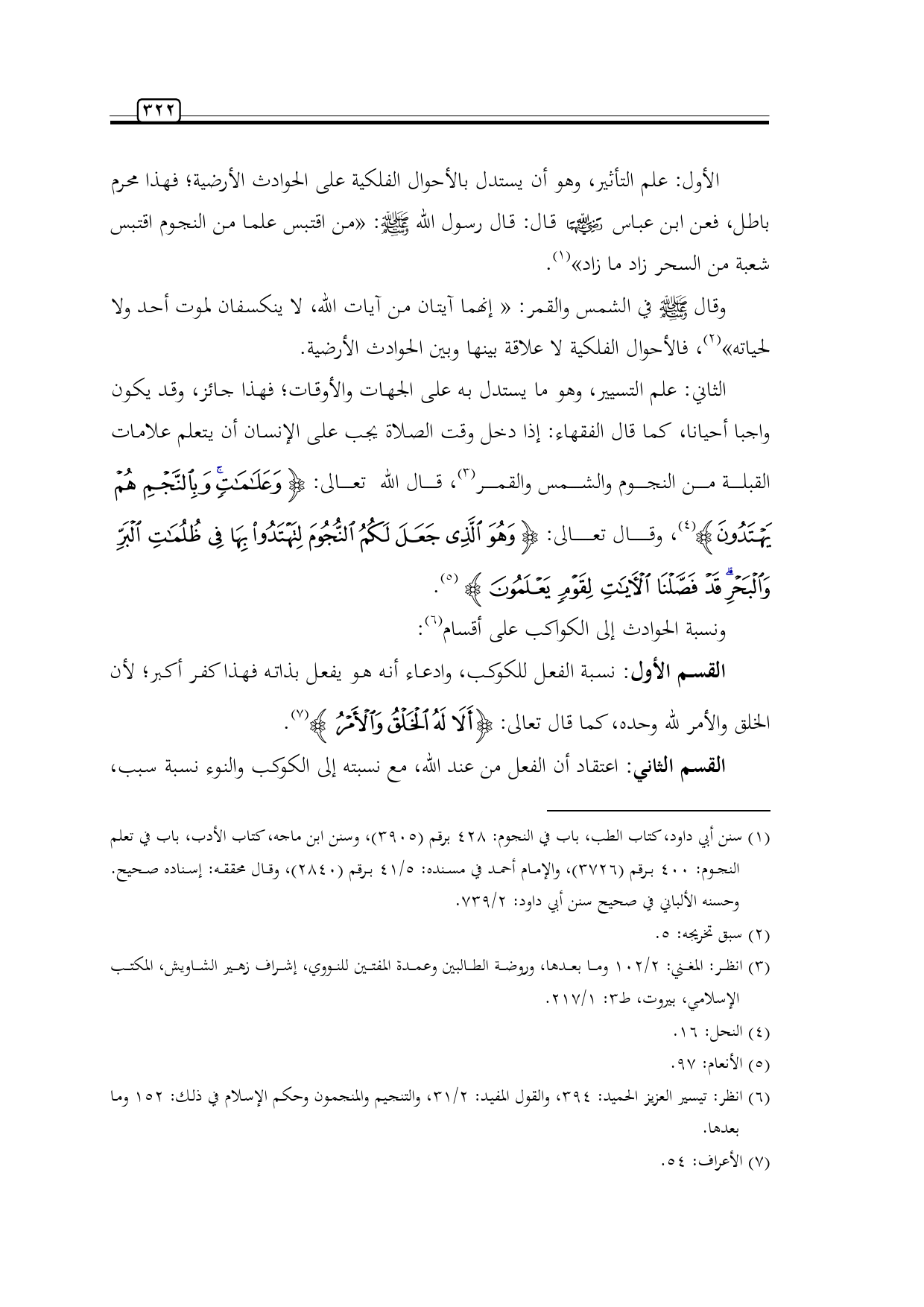 (¬6) انظر: تيسير العزيز الحميد: 394، والقول المفيد: 2/ 31، والتنجيم والمنجمون وحكم الإسلام في ذلك: 152 وما بعدها.