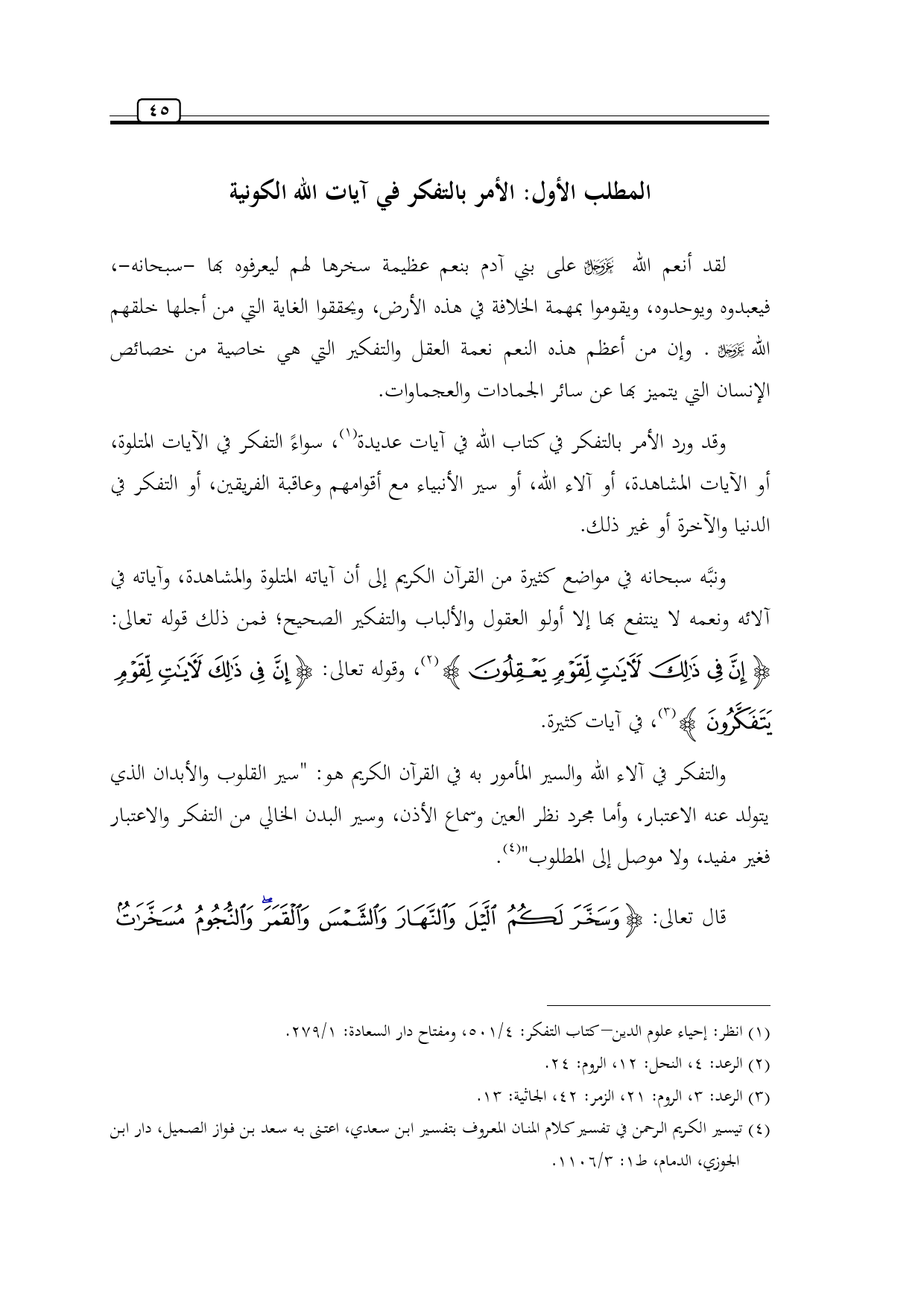 المطلب الأول: الأمر بالتفكر في آيات الله الكونية