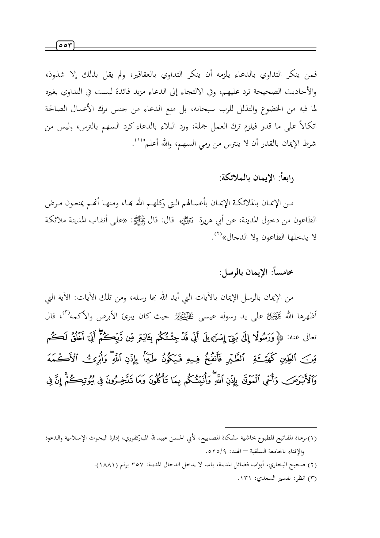 (¬1) مرعاة المفاتيح المطبوع بحاشية مشكاة المصابيح، لأبي الحسن عبيدالله المباركفوري، إدارة البحوث الإسلامية والدعوة والإفتاء بالجامعة السلفية - الهند: 9/ 525.