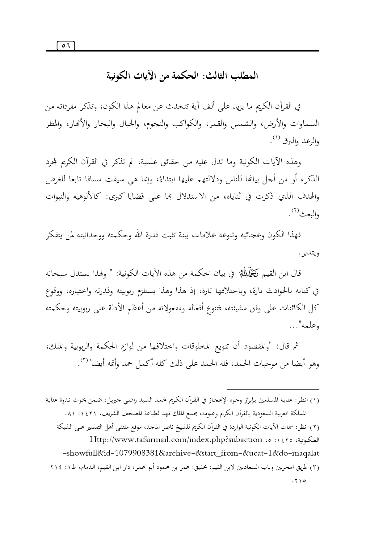 (¬2) انظر: سمات الآيات الكونية الواردة في القرآن الكريم للشيخ ناصر الماجد، موقع ملتقى أهل التفسير على الشبكة العنكبوتية، 1425: 5، Http://www.tafsirmail.com/index.php?subaction