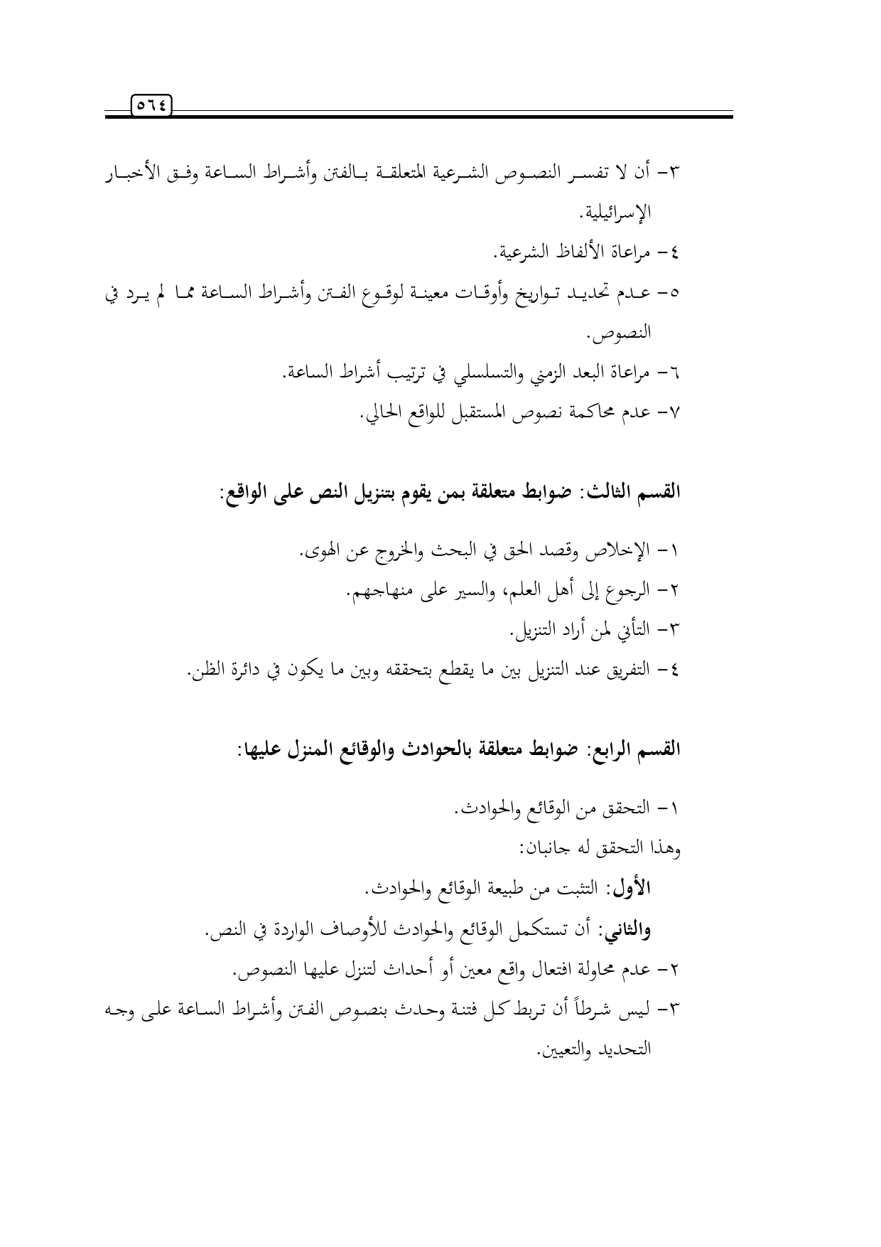 القسم الرابع: ضوابط متعلقة بالحوادث والوقائع المنزل عليها: