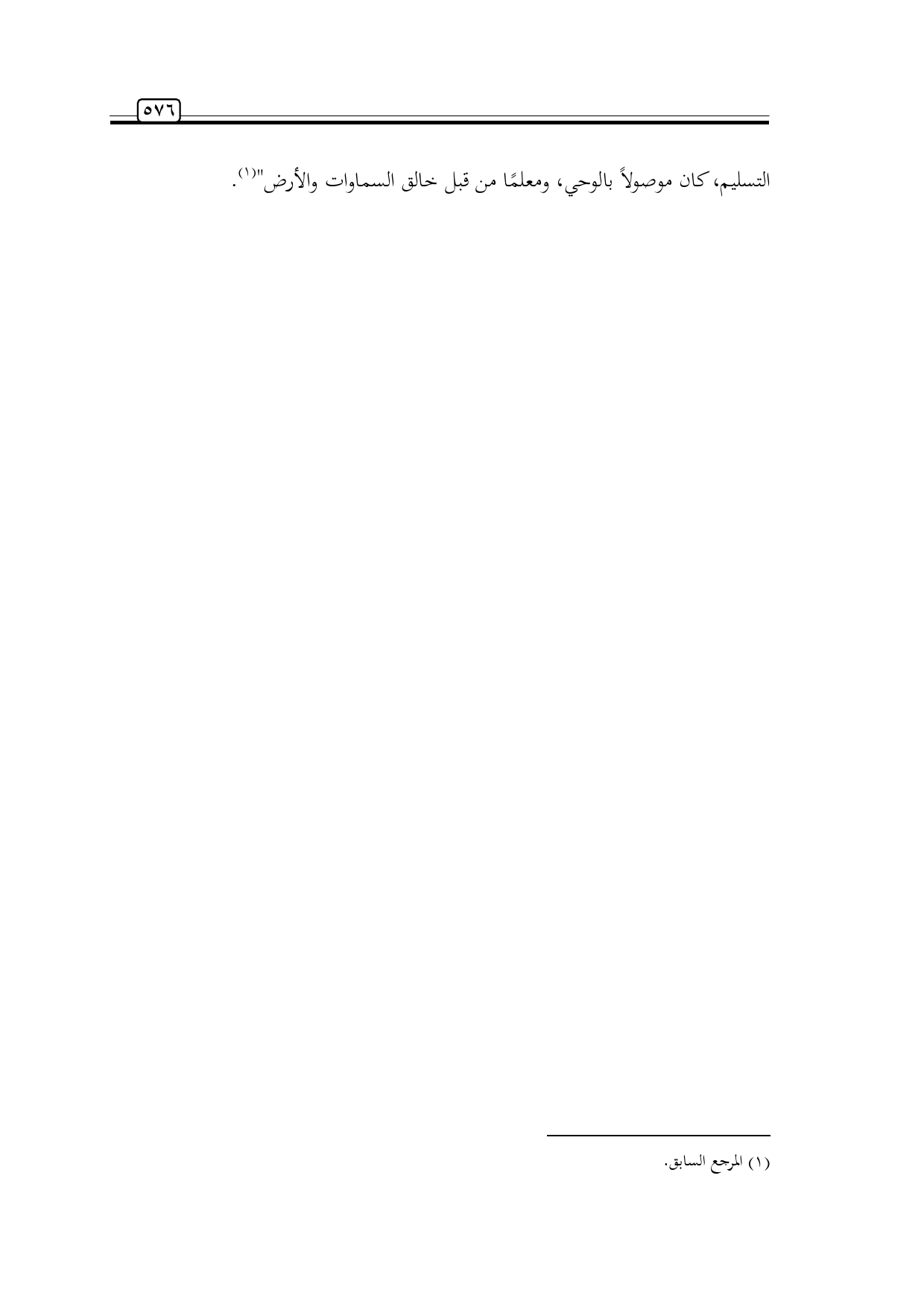 التسليم، كان موصولاً بالوحي, ومعلمًا من قبل خالق السماوات والأرض" (¬1).