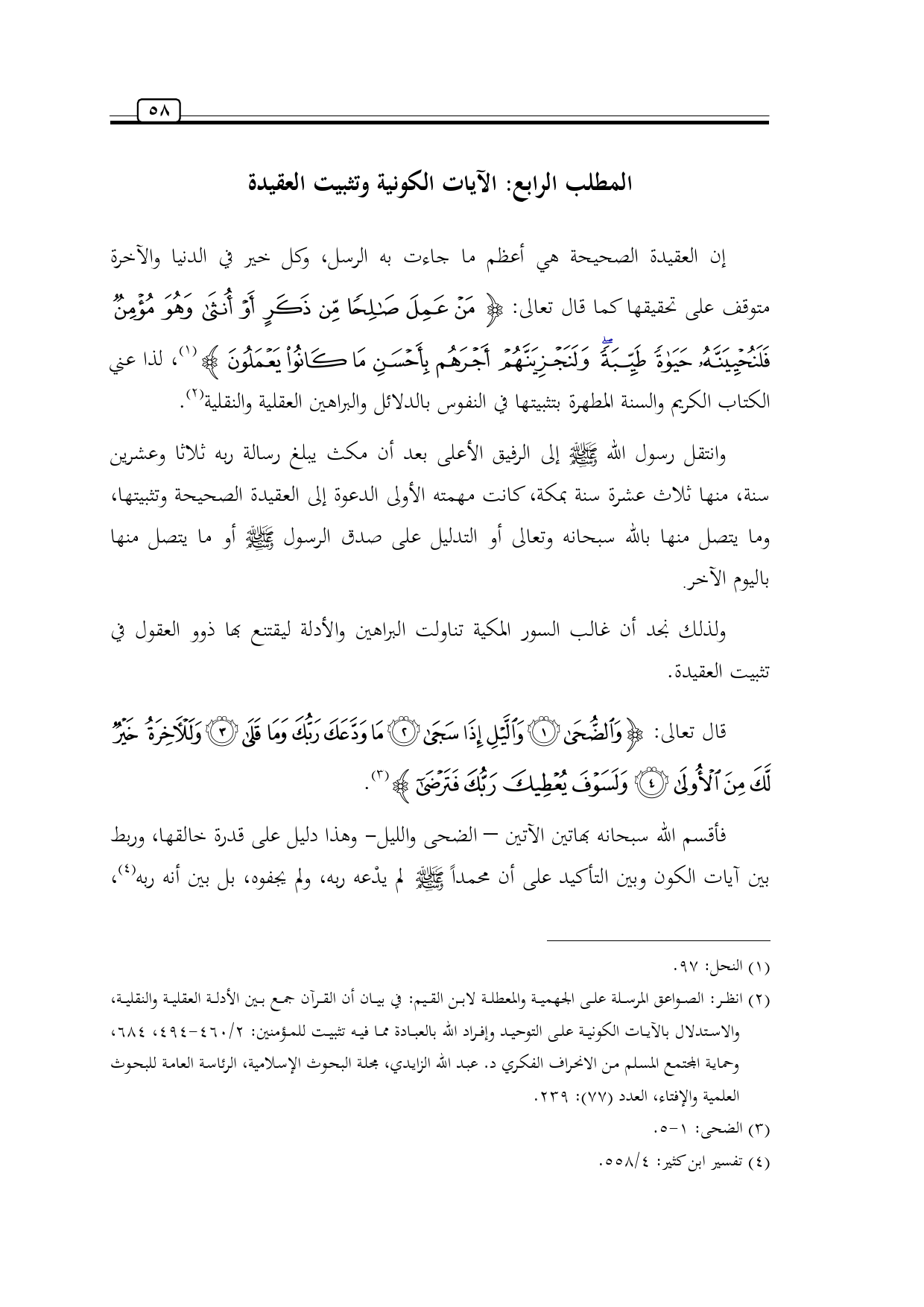 المطلب الرابع: الآيات الكونية وتثبيت العقيدة