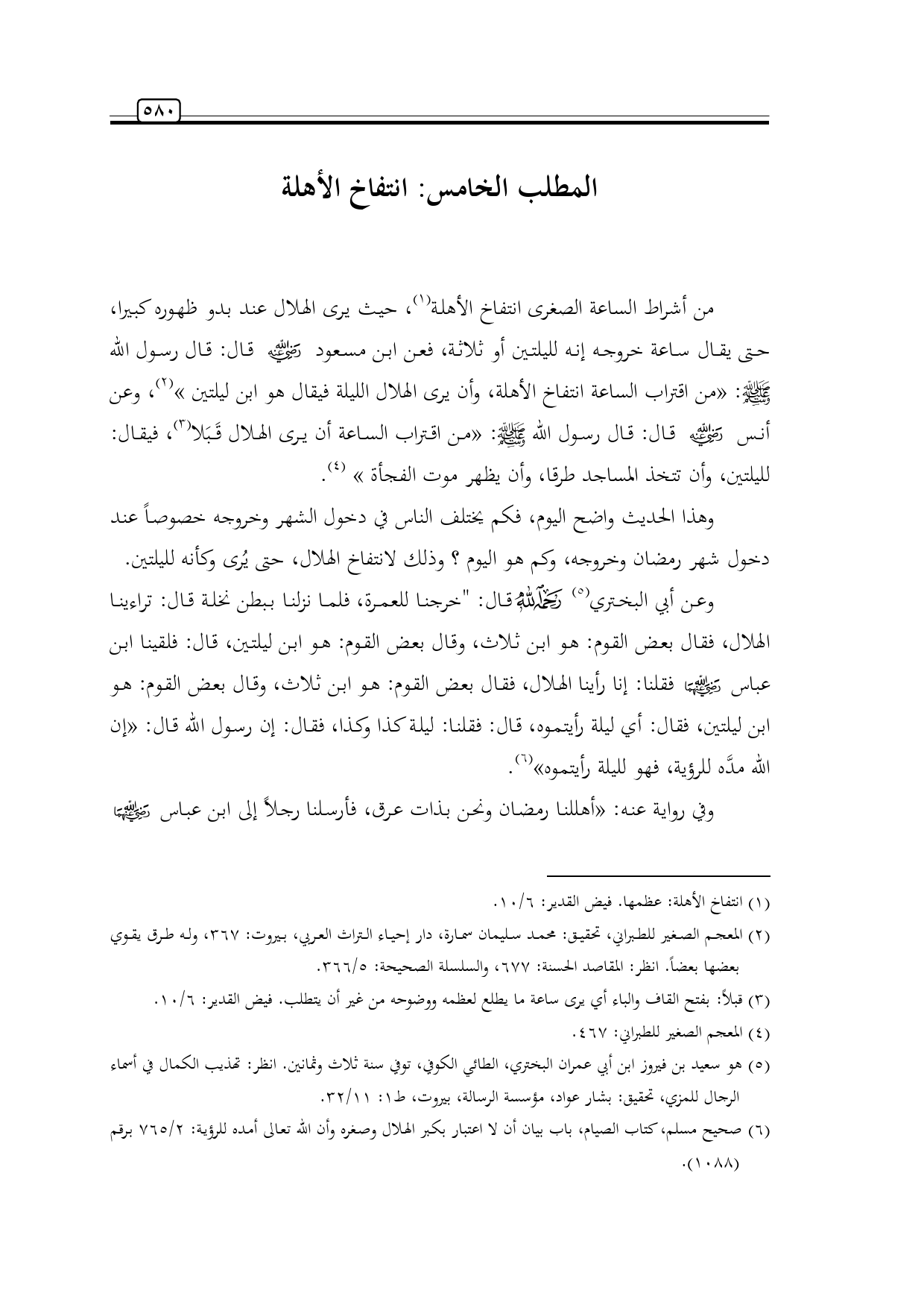 (¬6) صحيح مسلم، كتاب الصيام، باب بيان أن لا اعتبار بكبر الهلال وصغره وأن الله تعالى أمده للرؤية: 2/ 765 برقم (1088).