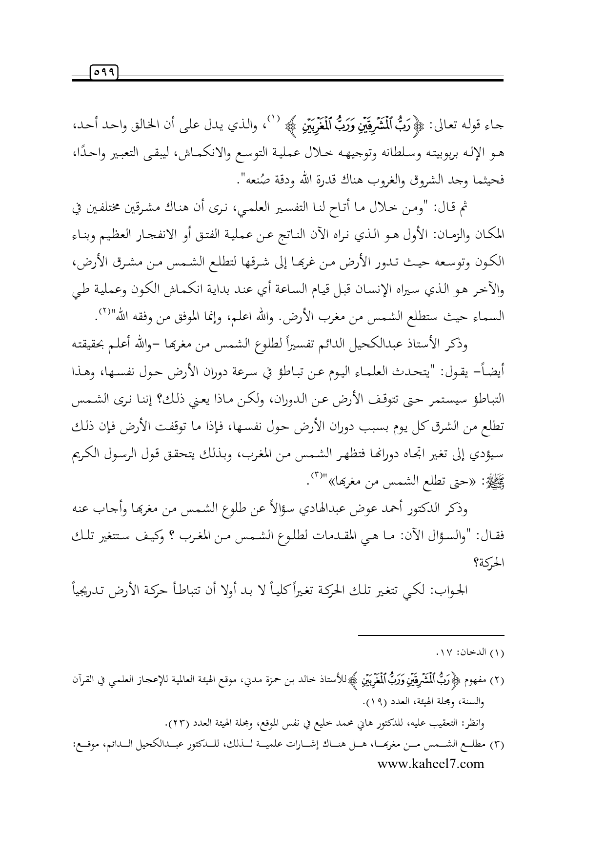 } (¬3) مطلع الشمس من مغربها، هل هناك إشارات علمية لذلك، للدكتور عبدالكحيل الدائم، موقع: www.kaheel7.com