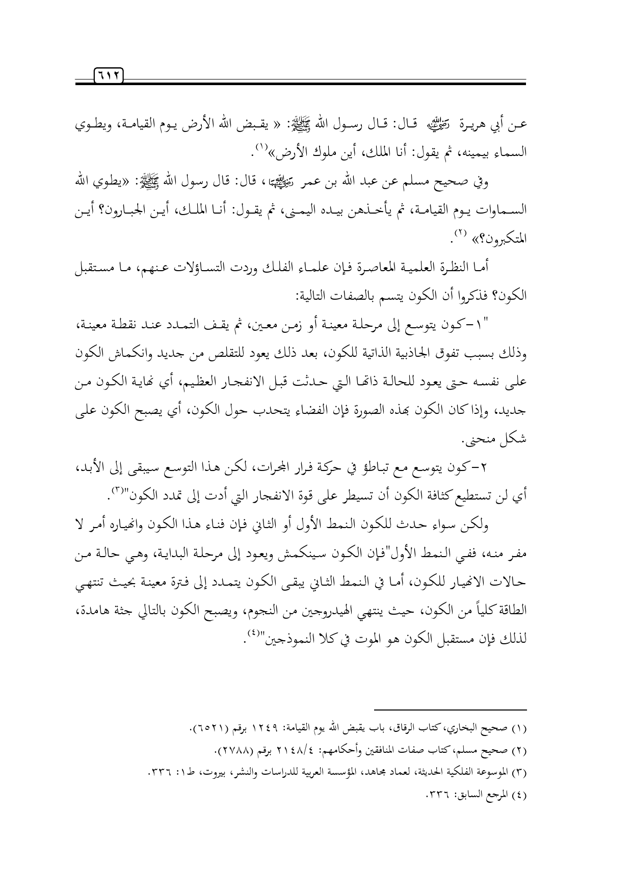 (¬1) صحيح البخاري، كتاب الرقاق، باب يقبض الله يوم القيامة: 1249 برقم (6521).