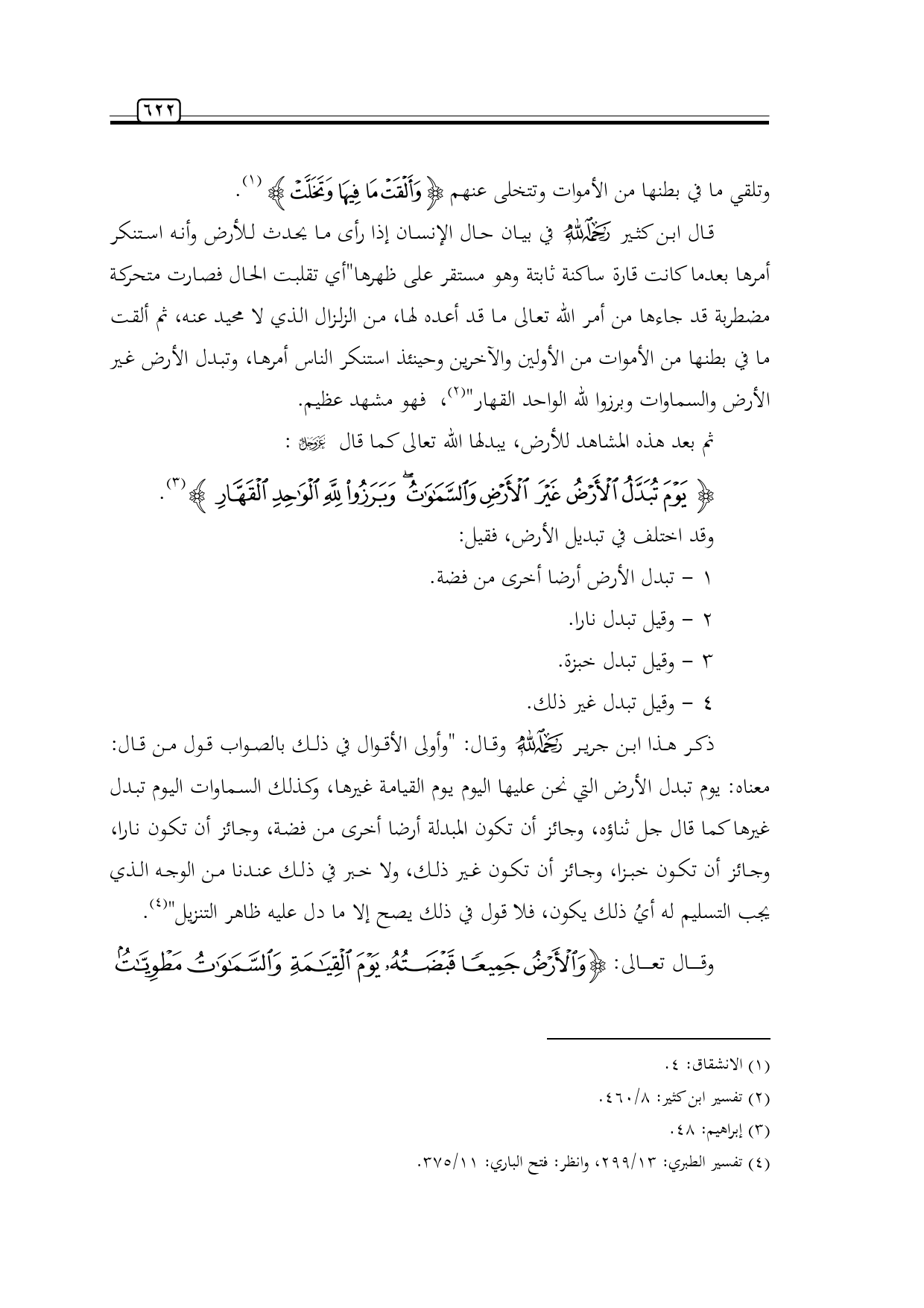 {يَوْمَ تُبَدَّلُ الْأَرْضُ غَيْرَ الْأَرْضِ وَالسَّمَاوَاتُ وَبَرَزُوا لِلَّهِ الْوَاحِدِ الْقَهَّارِ} (¬3).