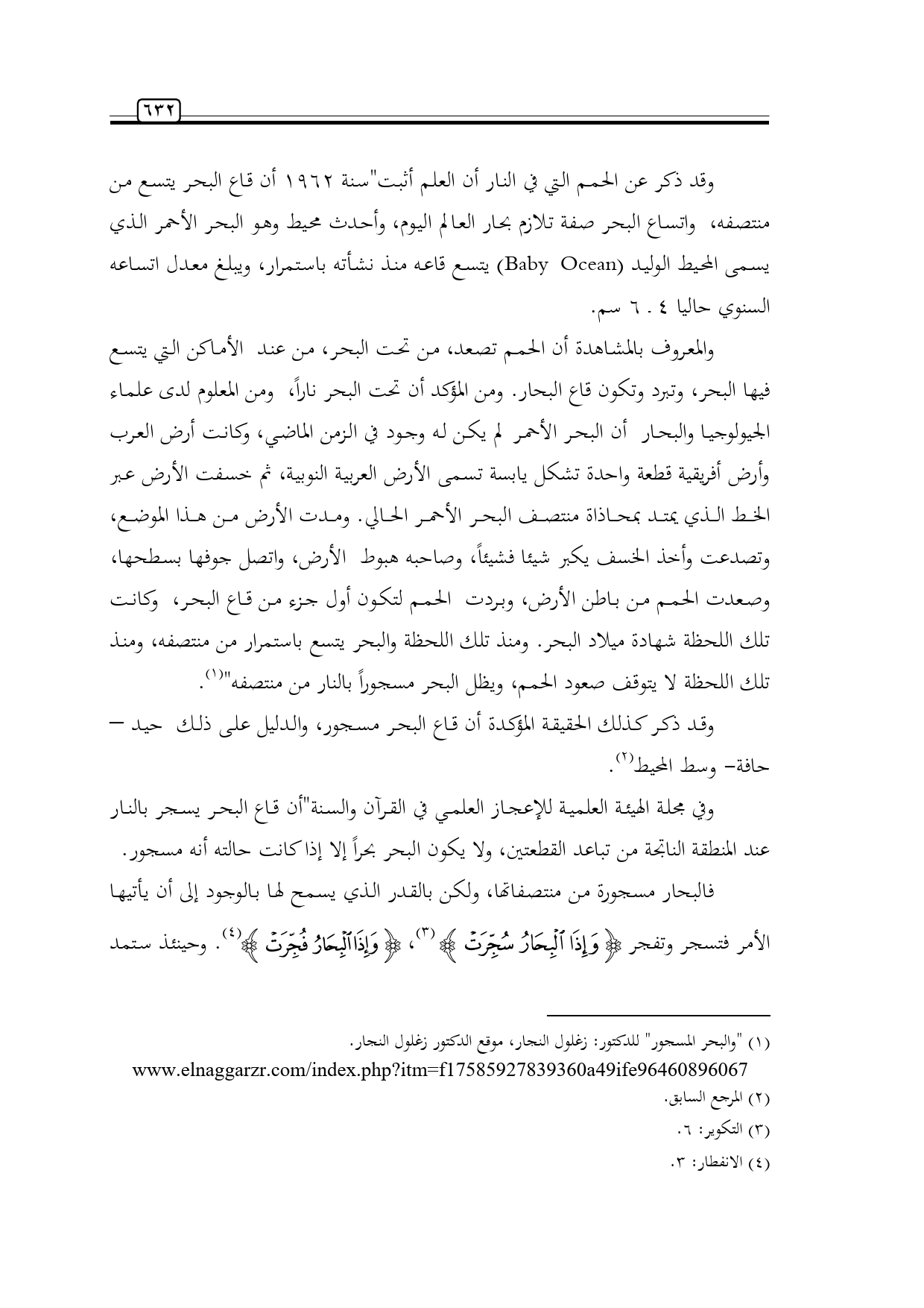 (¬1) "والبحر المسجور" للدكتور: زغلول النجار، موقع الدكتور زغلول النجار.