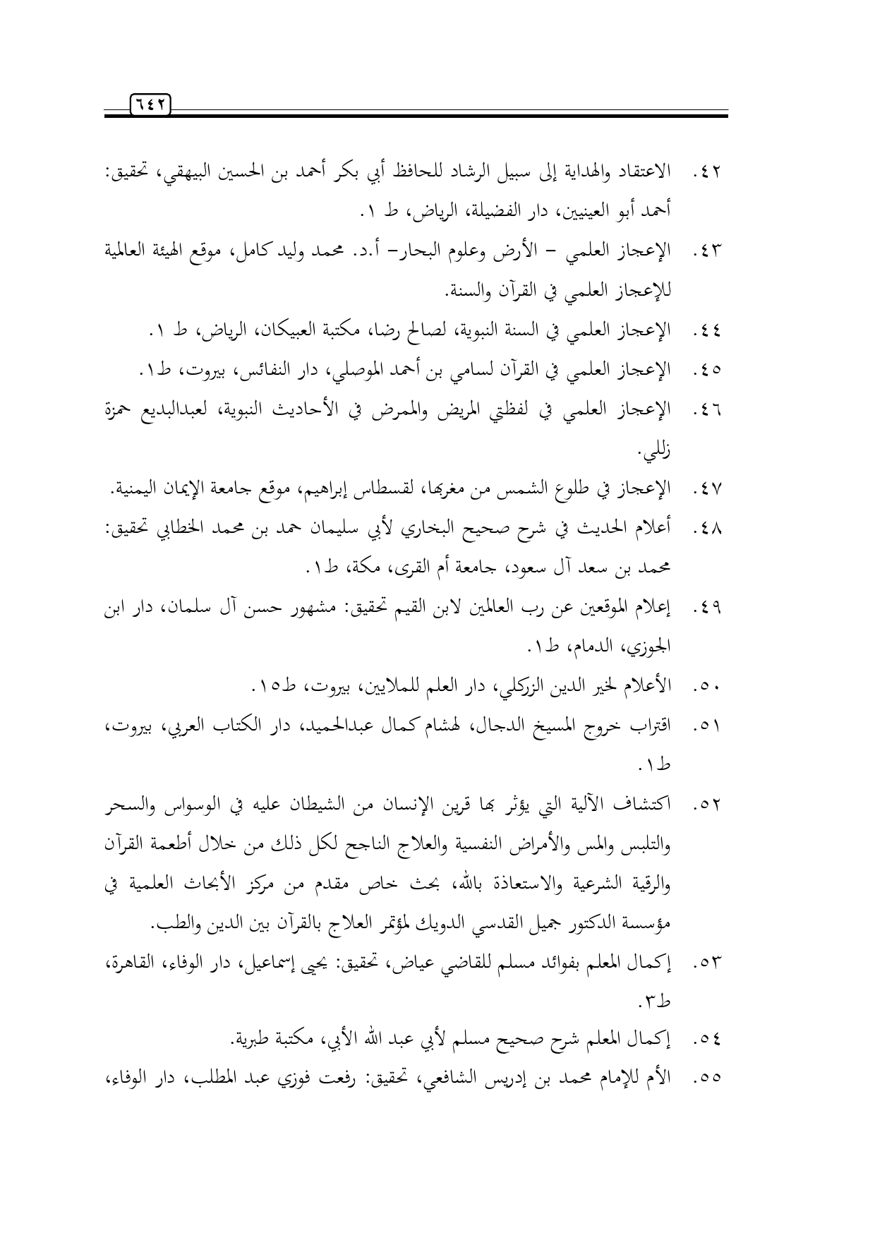 44. الإعجاز العلمي في السنة النبوية، لصالح رضا، مكتبة العبيكان، الرياض، ط 1.